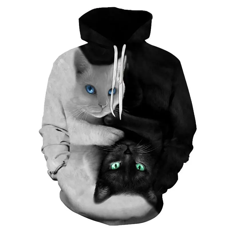 Милые толстовки с 3D изображением кота, для мужчин и женщин, в стиле Харадзюку, с капюшоном, для мальчиков и девочек, белые, с 3D изображением животных, уличные пуловеры