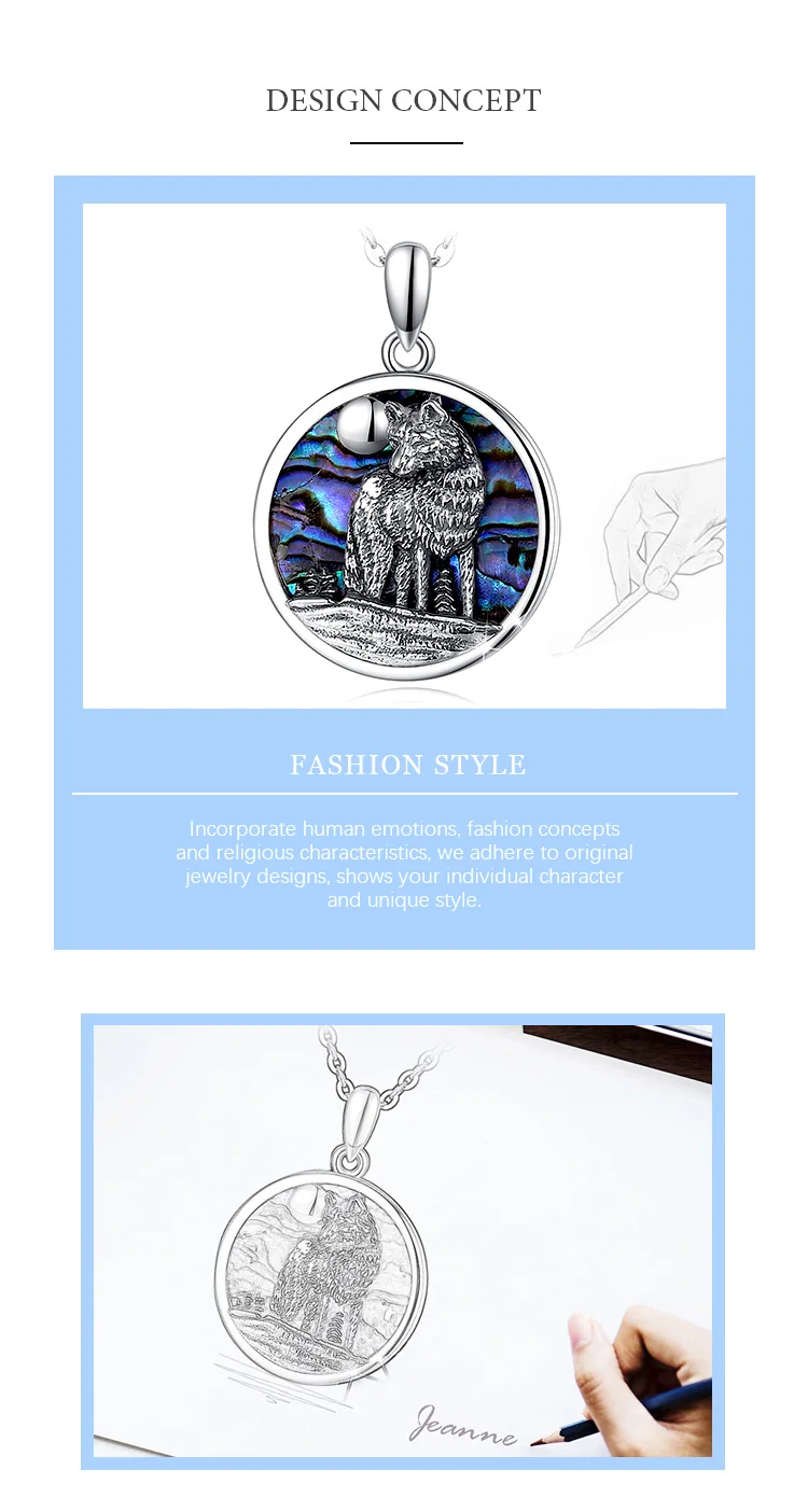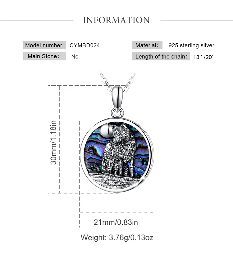 Эудора, 925 пробы, серебро, Абалон, одинокий волк, ожерелье, мать, ...