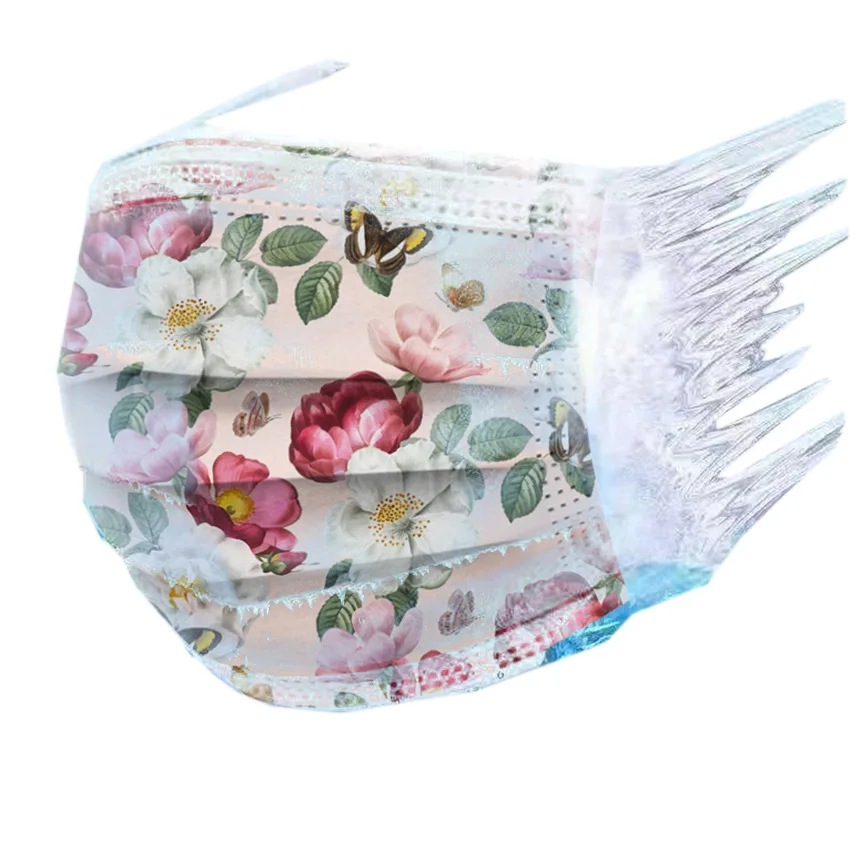Маска одноразовая маска для лица женская с цветами, модная 3-слойная защитная дышащая Пылезащитная, для лета, 50 шт.