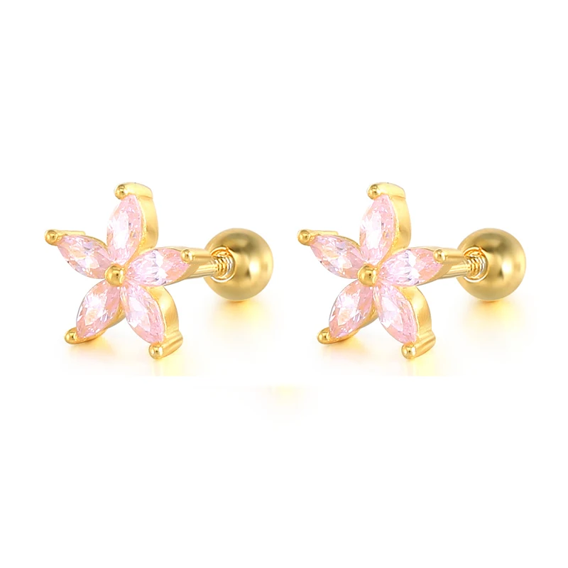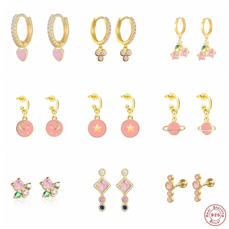 Серьги-гвоздики из стерлингового серебра 925 пробы с милым розовым кристаллом Звезда Сердце Любовь Эмаль пирсинг серьги для свадьбы Рождественские украшения подарки