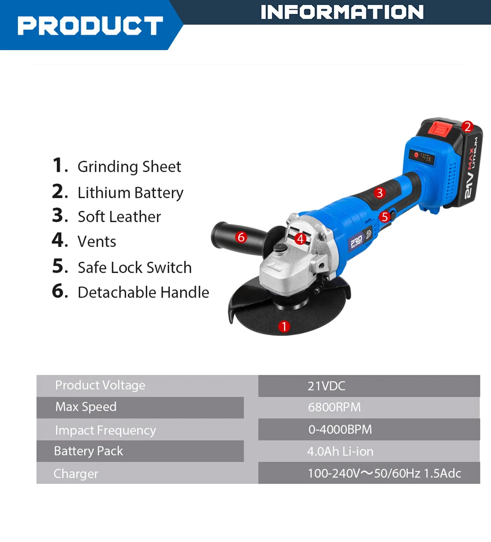 Угловая шлифовальная машина PROSTORMER, 21 в, электрическая, беспроводная, с литий-ионным аккумулятором