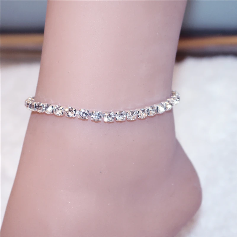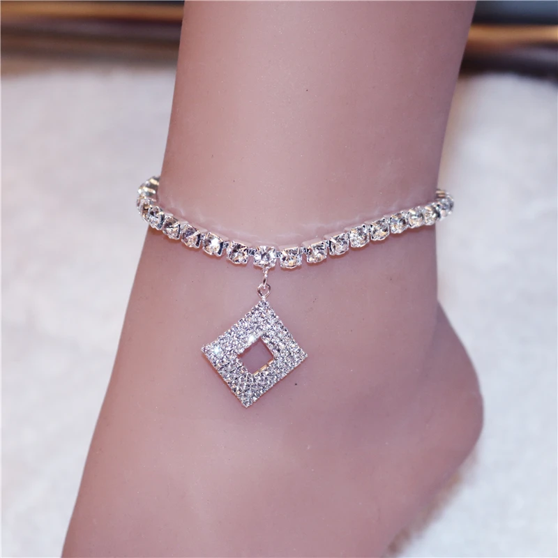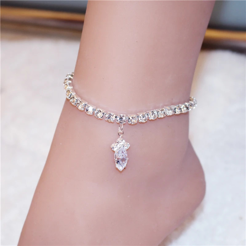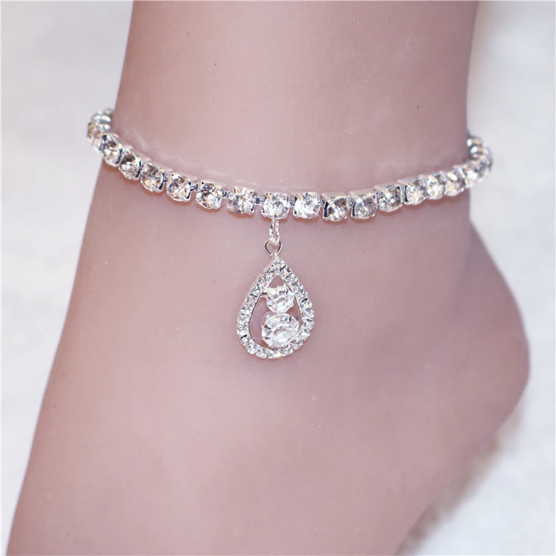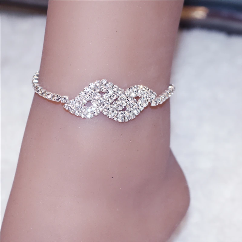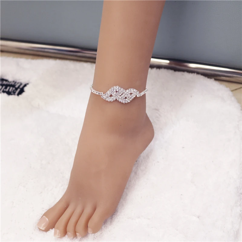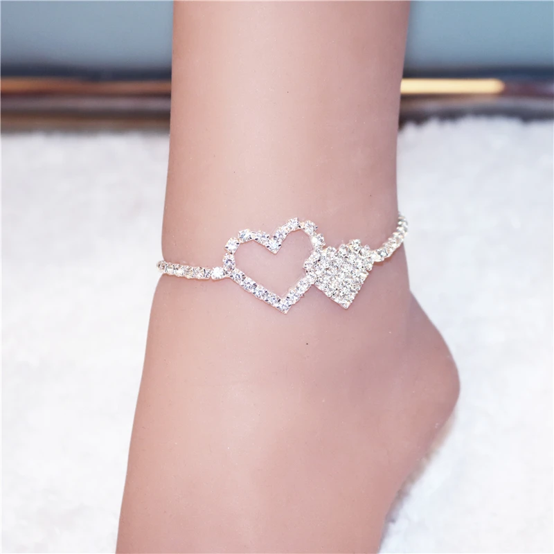 Модный браслет стразы серебряного цвета с двойным сердцем для женщин, украшенный камнями, браслет на лодыжку, цепочка, ювелирные изделия