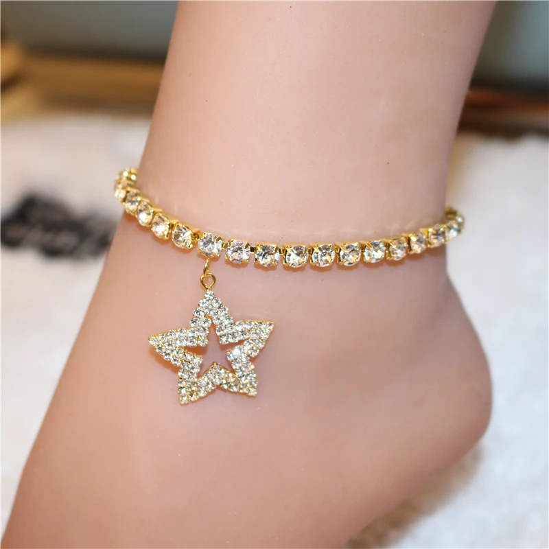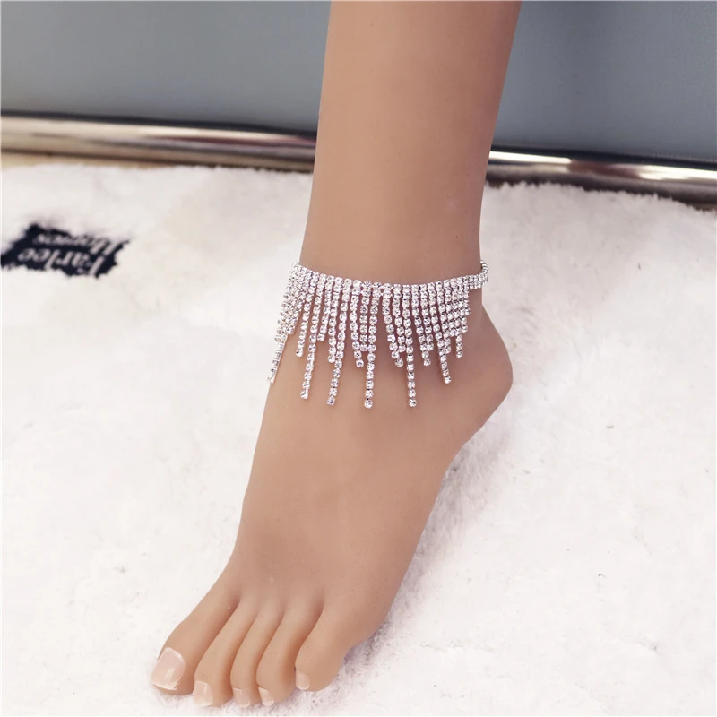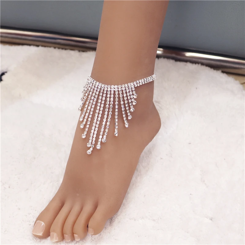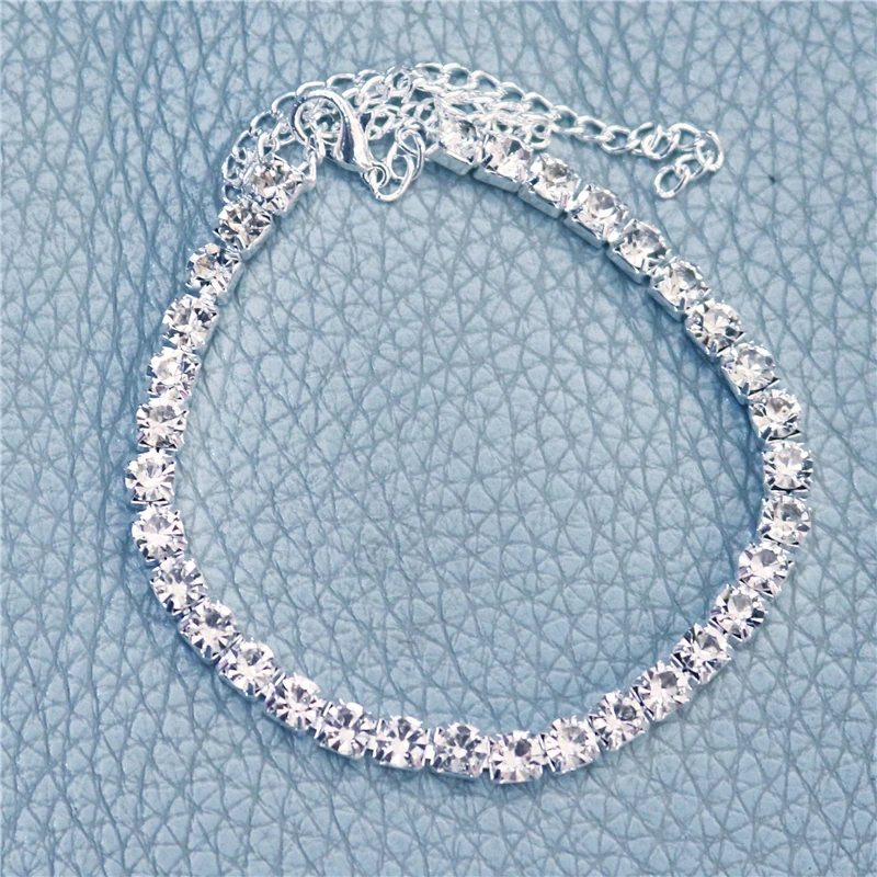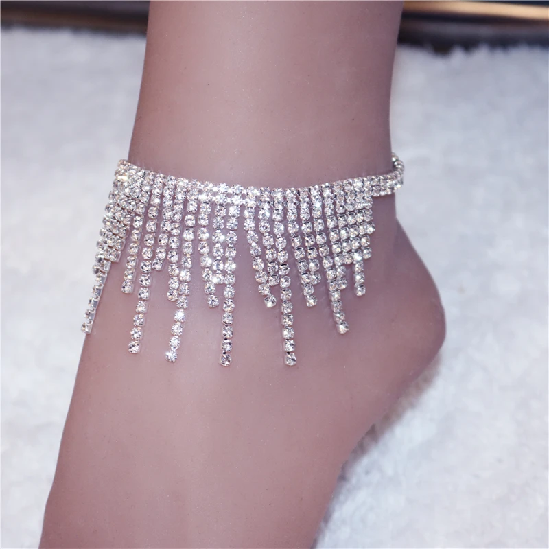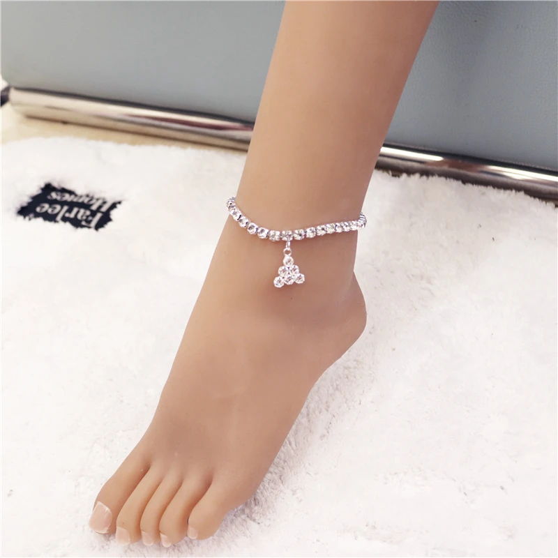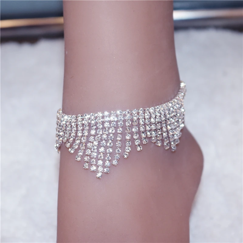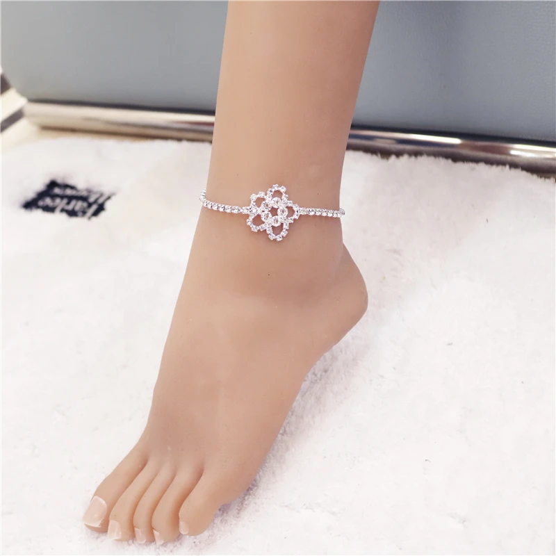 Модный браслет стразы серебряного цвета с двойным сердцем для женщин, украшенный камнями, браслет на лодыжку, цепочка, ювелирные изделия