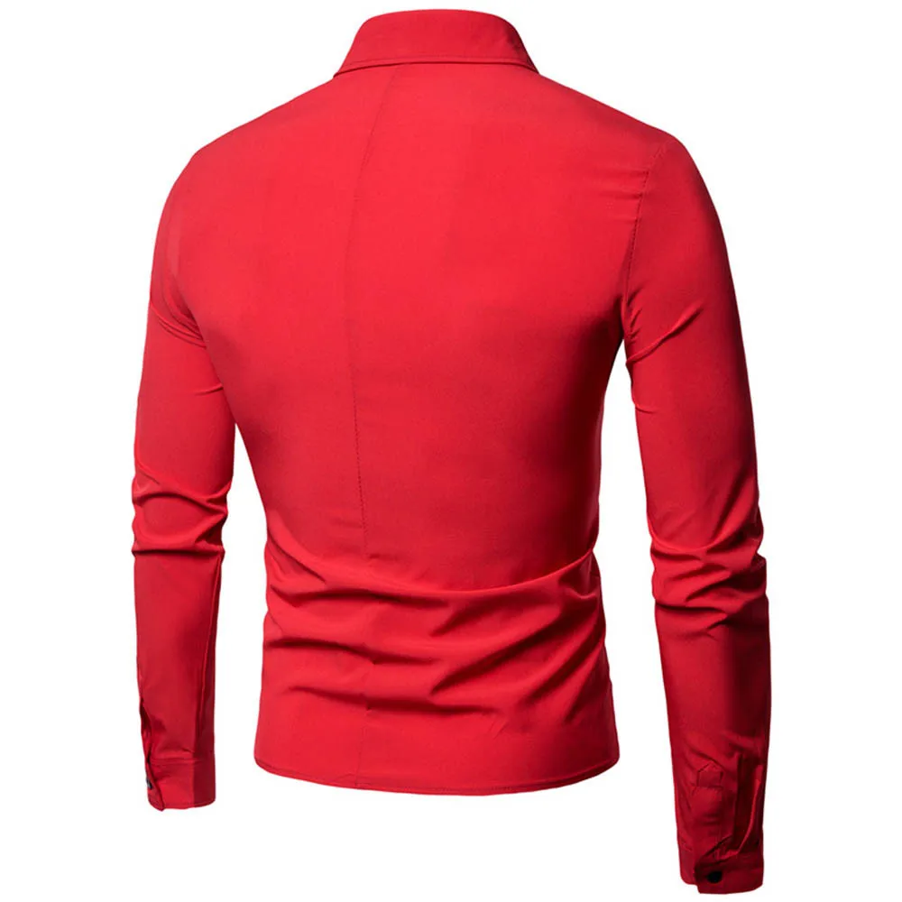 Мужская приталенная рубашка с длинным рукавом, черная, белая, красная Повседневная приталенная рубашка с длинными рукавами, 2021