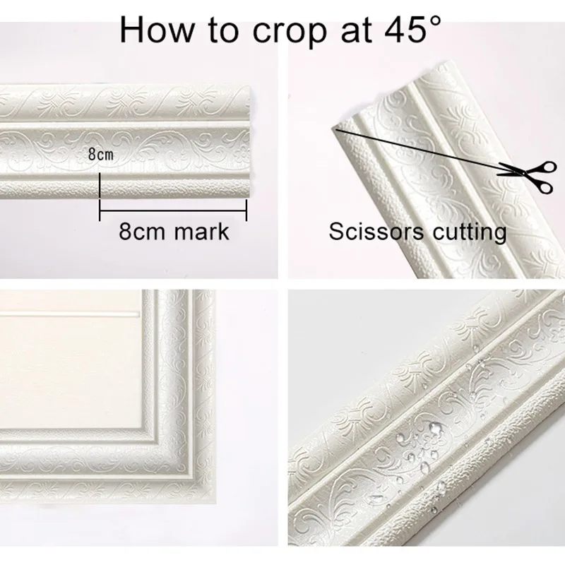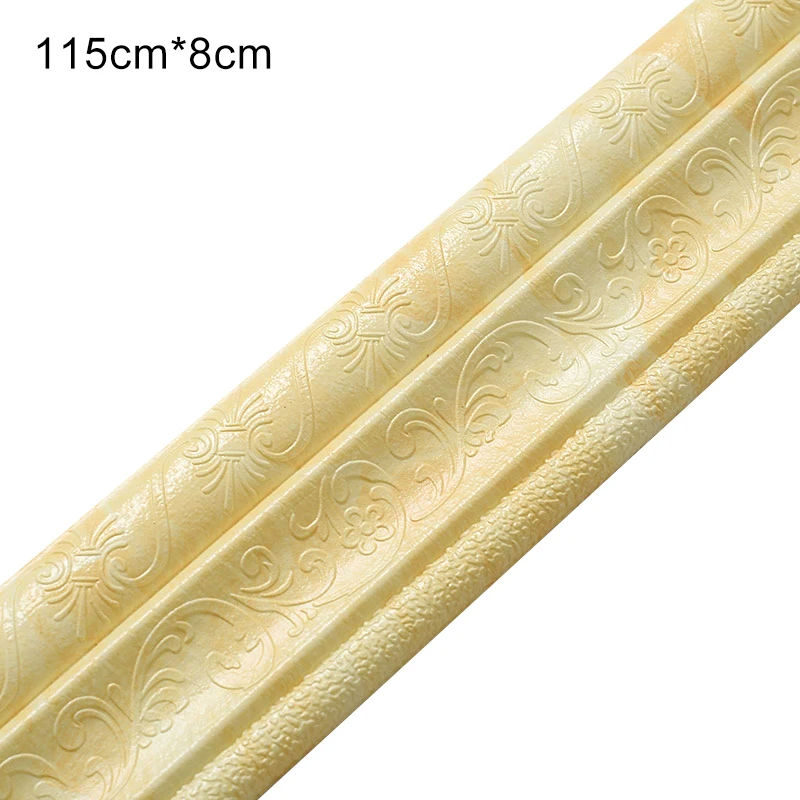 Описание:* Материал: ПЭ пена* Размер:77 см * 8 см * 8 мм/115 см * 8 см * 8 мм* Цвет: синий, желтый, медный, белый, желтый, черный* Применимая сцена: подходит для фоновой стены, плинтуса, украшения балкона, фоновой границы, дверной рамы и украшения подоконника, ремонта стен и т. д.* Характеристики: Водонепроницаемость и влагостойкость, защита от сжатия и столкновений, простота в использовании с клеем, легко украсить стену.* Самоклеящаяся 3D стерео Наклейка на стену из пенопласта, лента на талии, кромкооблицовочная рамка для защиты от столкновений, водонепроницаемая плинтус.