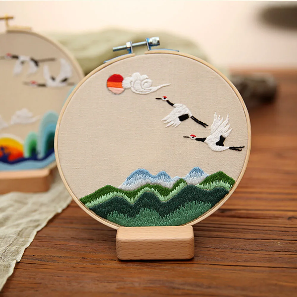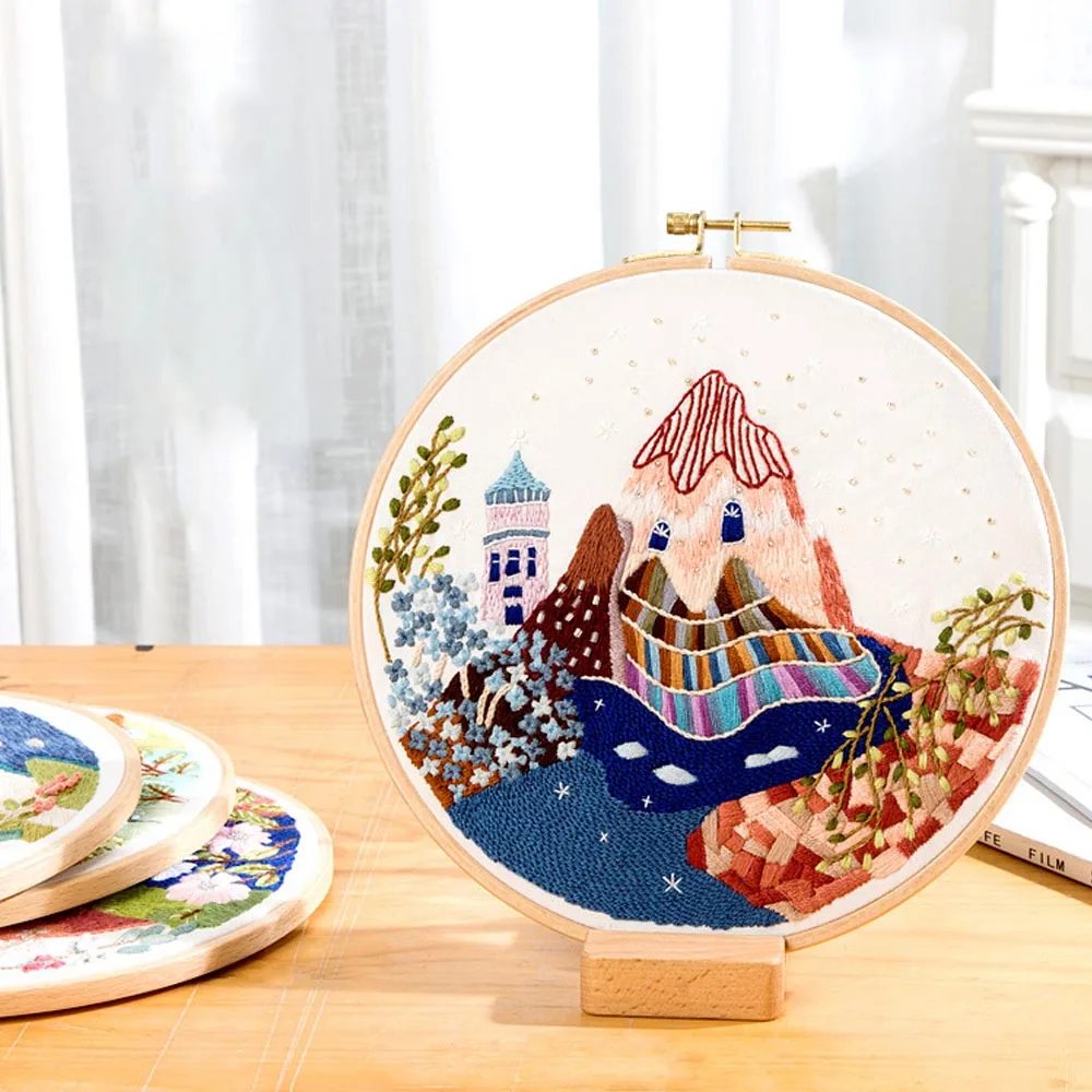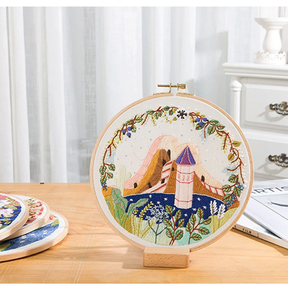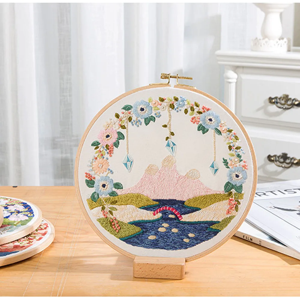 Набор для вышивки сделай сам, круглая ткань с цветочным принтом и растительным узором, для рукоделия, Набор для вышивания, обруч, аксессуары для шитья