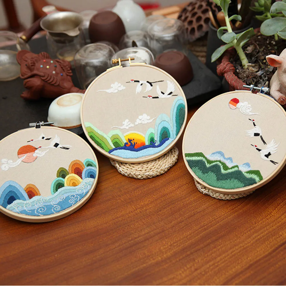 Набор для вышивания цветов и растений, набор для рукоделия, набивная ткань, круглый набор для рукоделия, Набор для вышивания, аксессуары для шитья