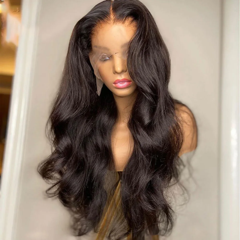 Парик струйный Черный с глубокой волной, синтетические передние пар...