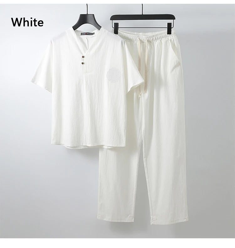 Мужская одежда из двух предметов, спортивный костюм большого размера для мужа, лето 2021, льняная футболка, модный мужской комплект в китайском стиле