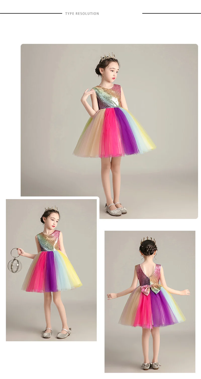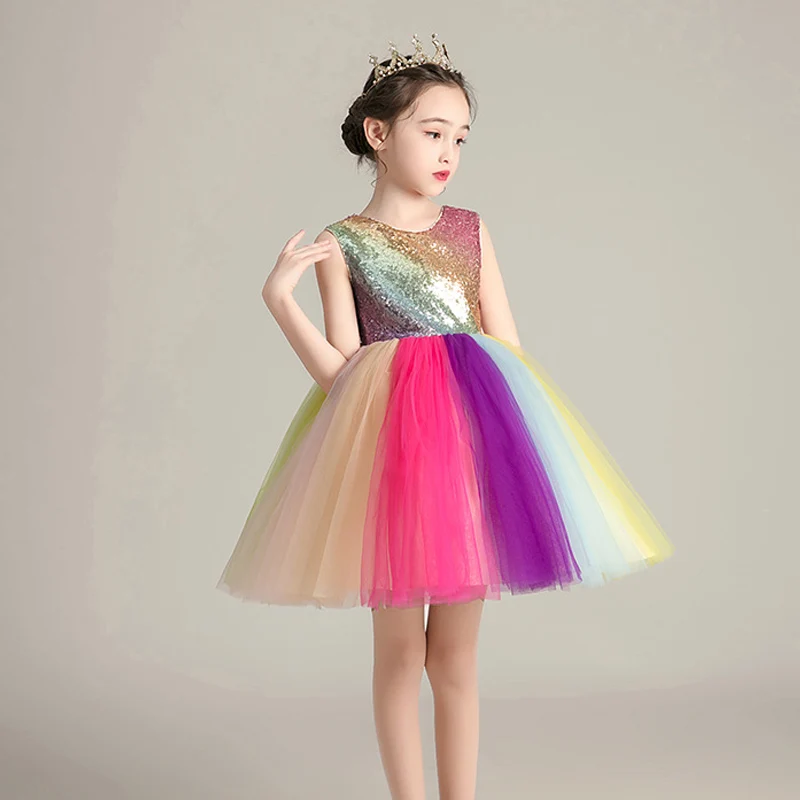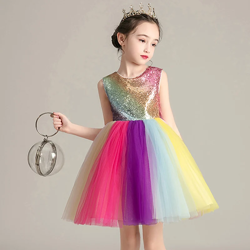 Детское Сетчатое платье без рукавов, радужные платья для девочек, платья принцессы, платья для дня рождения, вечерние платья, пышная юбка для свадьбы, новинка 2021