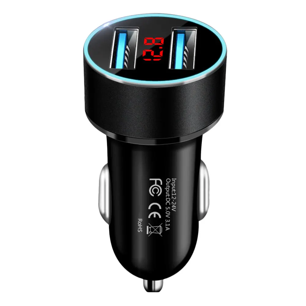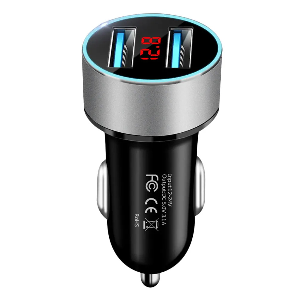 Автомобильное зарядное устройство USB, 2 порта, светодиодный индикатор, 3,1 А, универсальное, быстрая зарядка для телефона, iPhone, Samsung, Автомобильное Зеркало, двойной адаптер быстрой зарядки