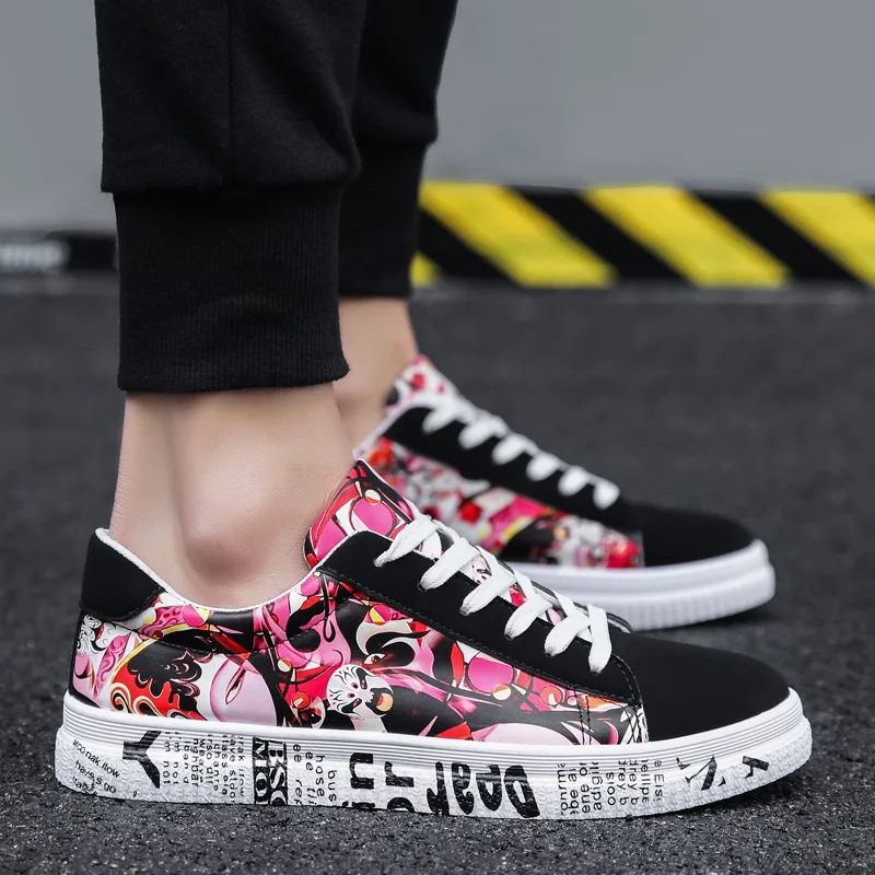 Кроссовки с вулканизированной подошвой для мужчин и женщин, Повседневная модная парусиновая спортивная обувь на шнуровке, с граффити