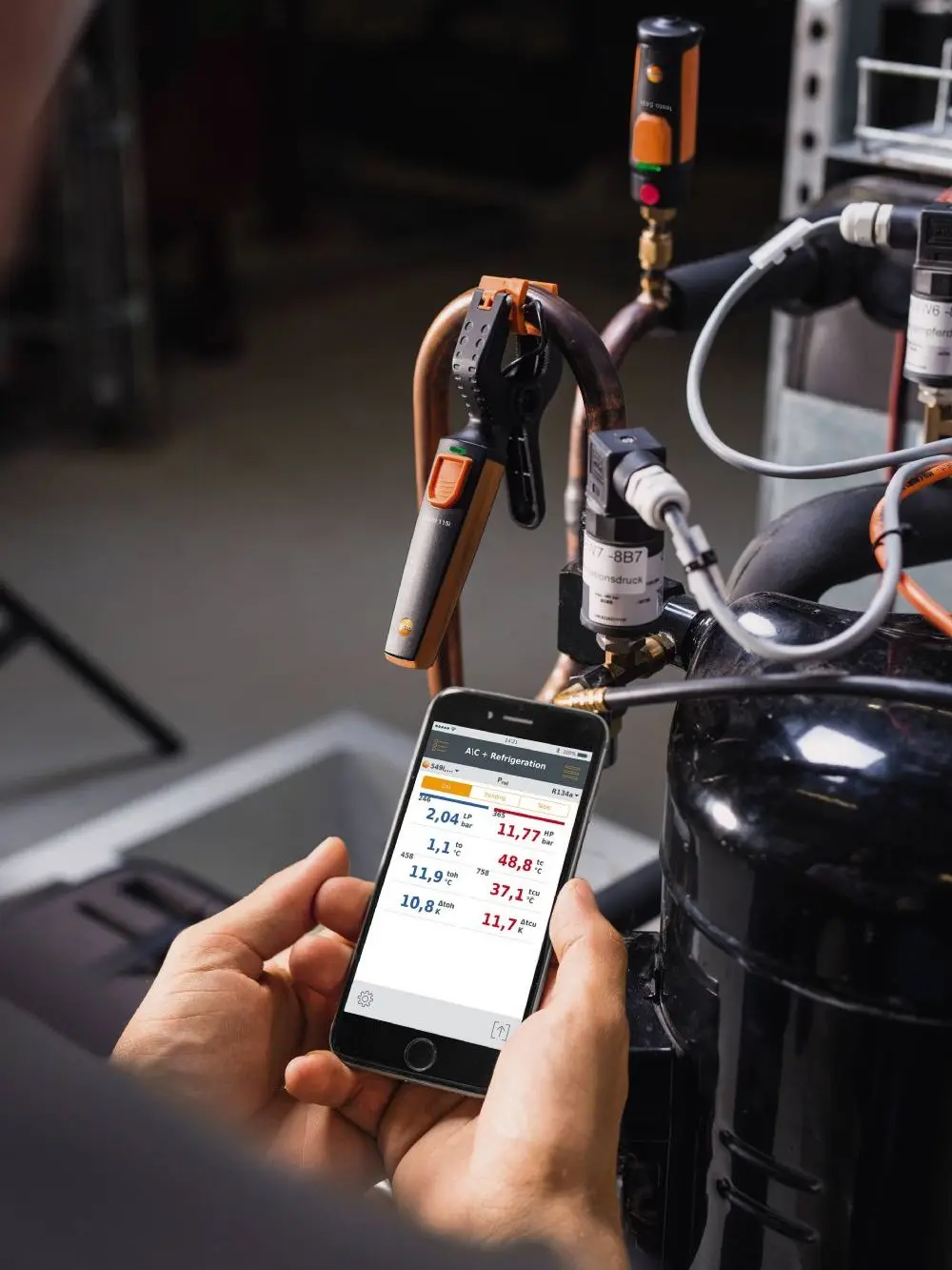 В сочетании со смартфоном или планшетом, testo 115i clamp thermometer является идеальным инструментом для измерения температуры для проведения обслуживания и устранения неисправностей в холодильных, кондиционирующих и нагревательных системах, а также для их установки. Его также можно использовать для измерения температуры потока и возврата.