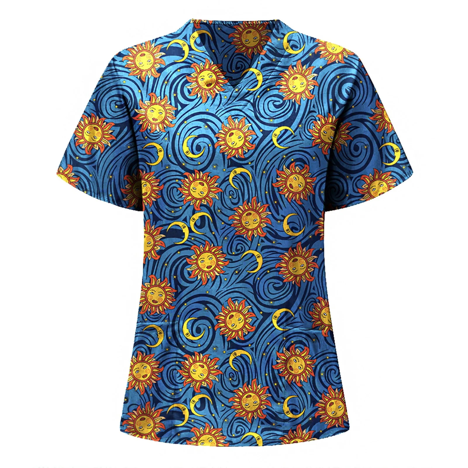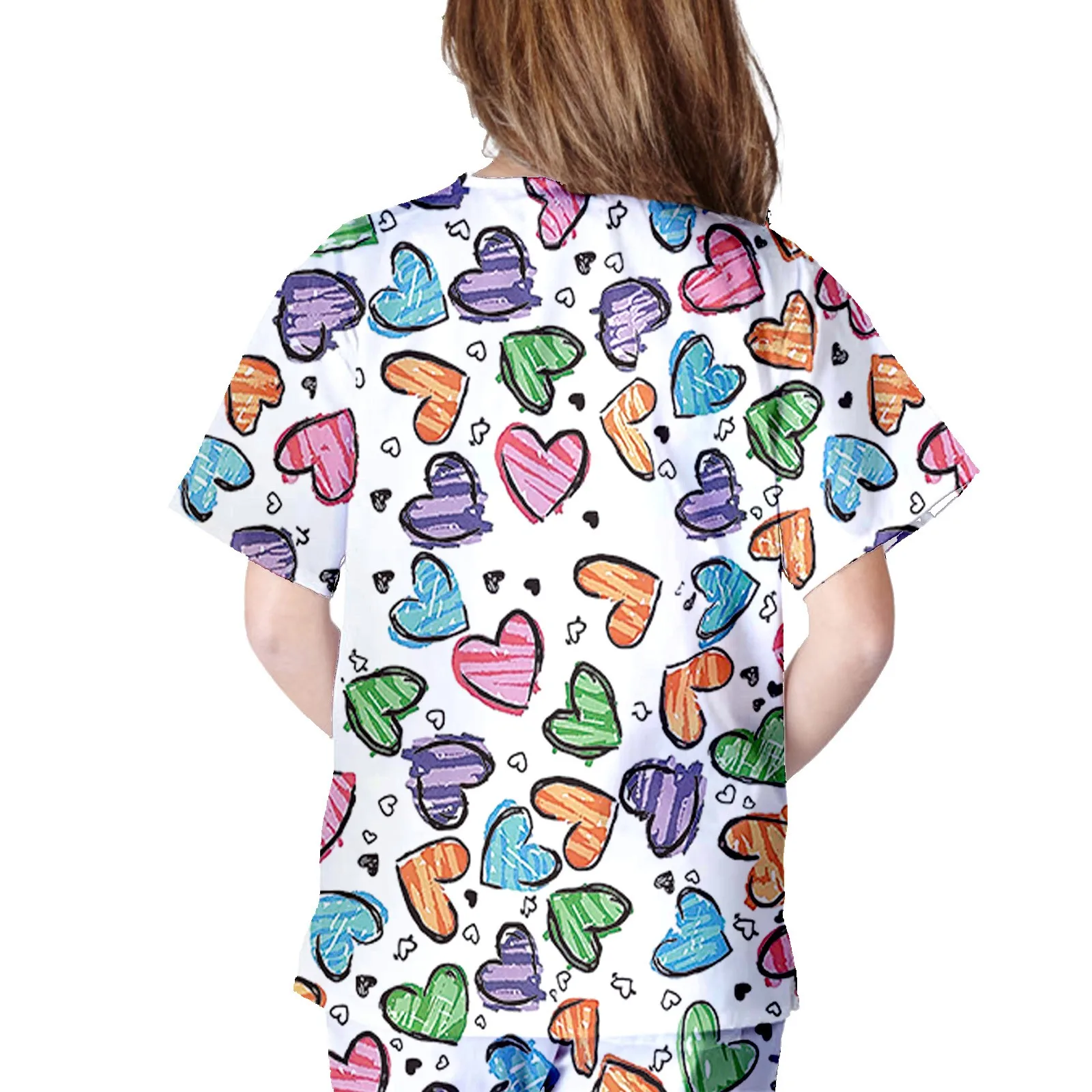 Топы на каждый день, Для женщин короткий рукав блузка с v-образным вырезом кормящих рабочая одежда футболки с принтом в виде сердечек здравоохранения Туника уход спецодежды A50