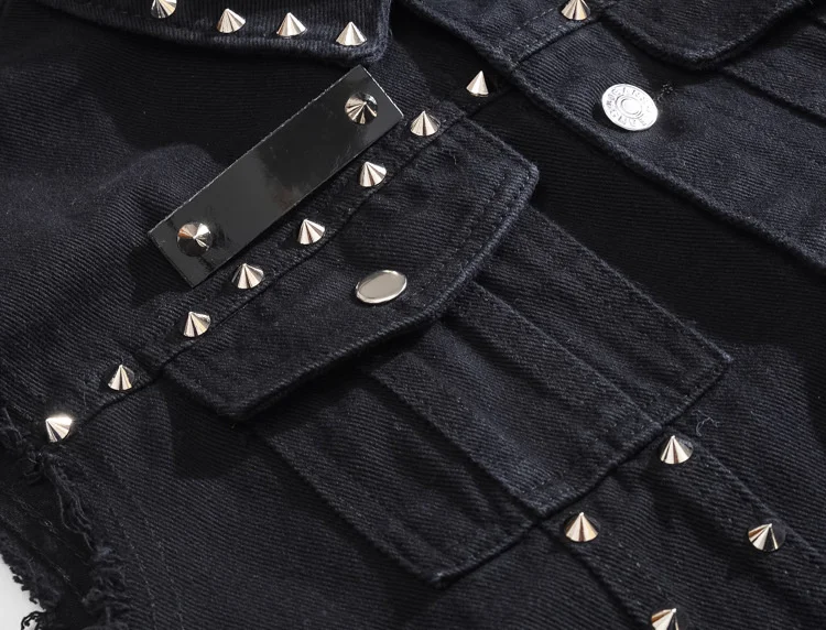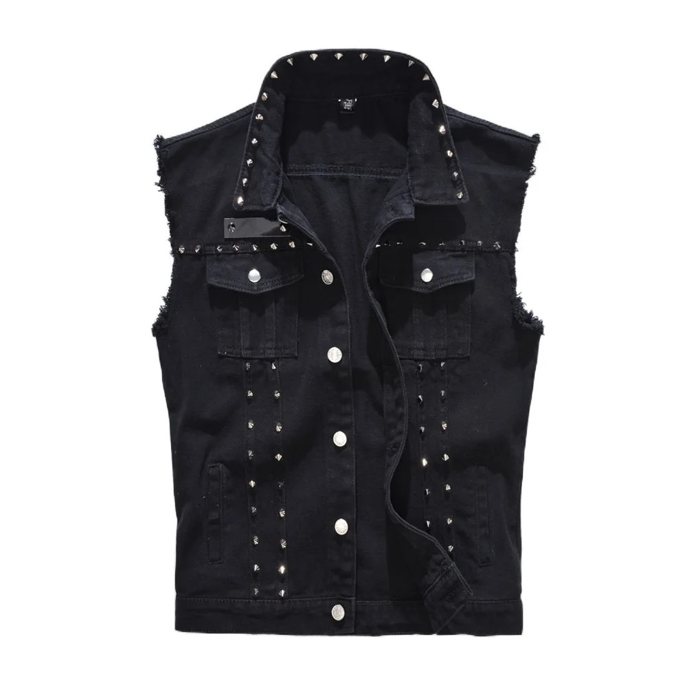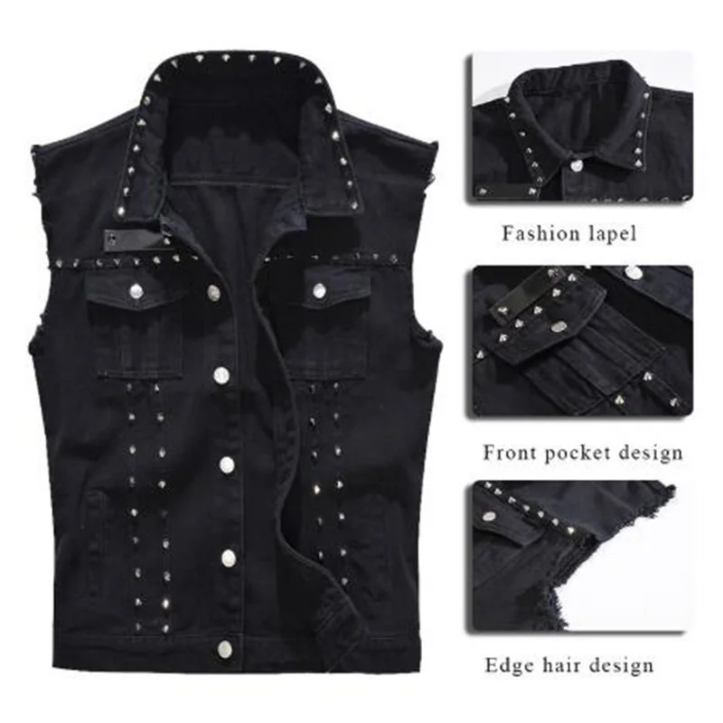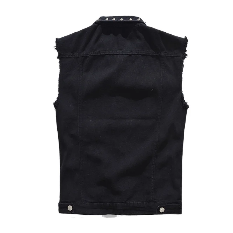 Новый 2021 джинсовый жилет для мужчин в стиле панк-рок, с заклепками, в ковбойском стиле, черные джинсы жилет Модные мужские мотоботы Стиль без рукавов Джинсовая куртка M-5XL