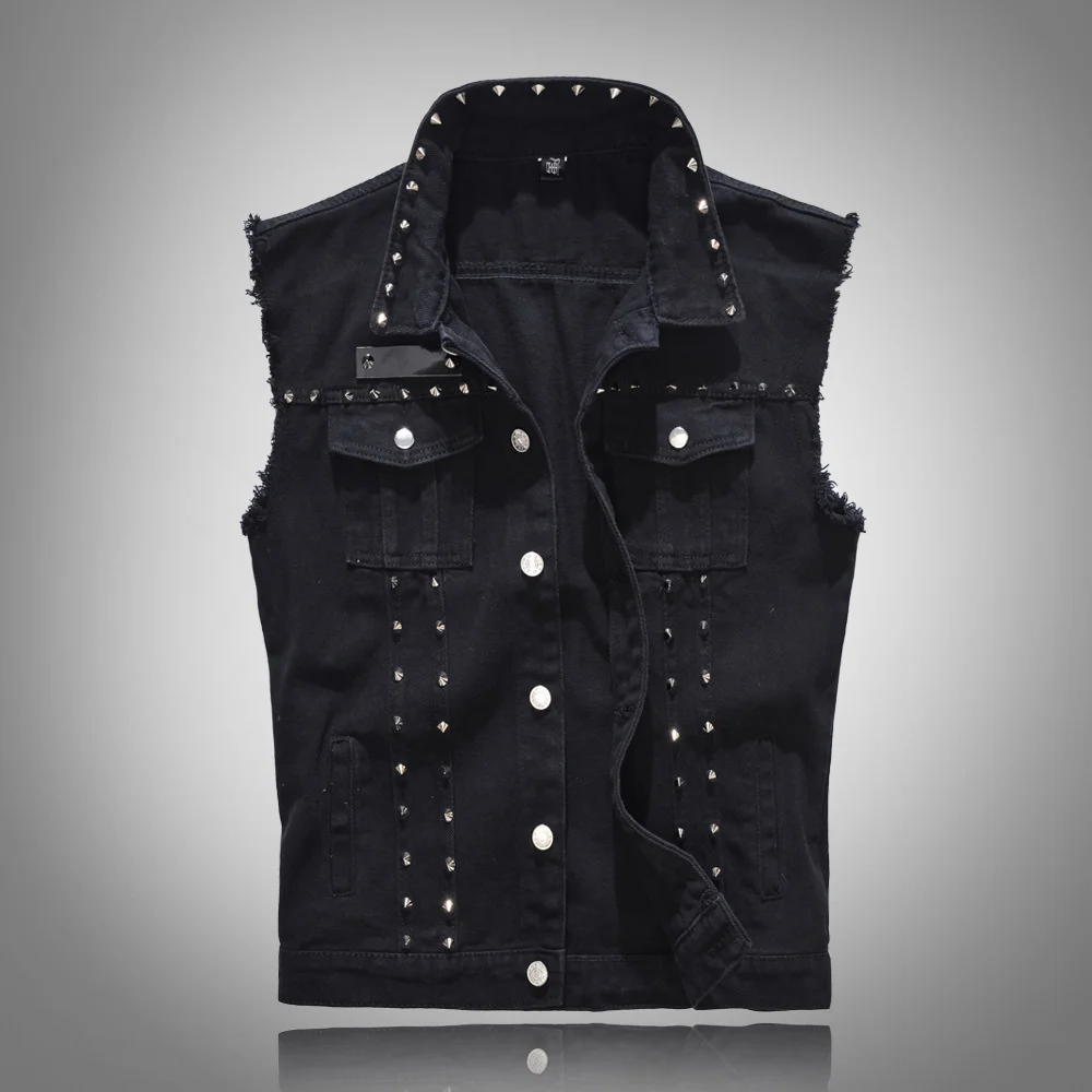 Мужской джинсовый жилет, без рукавов, с заклепками, в стиле панк-ро...
