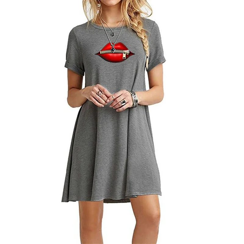 Женское летнее платье, короткий рукав, миди, Свинг, футболка, плать...