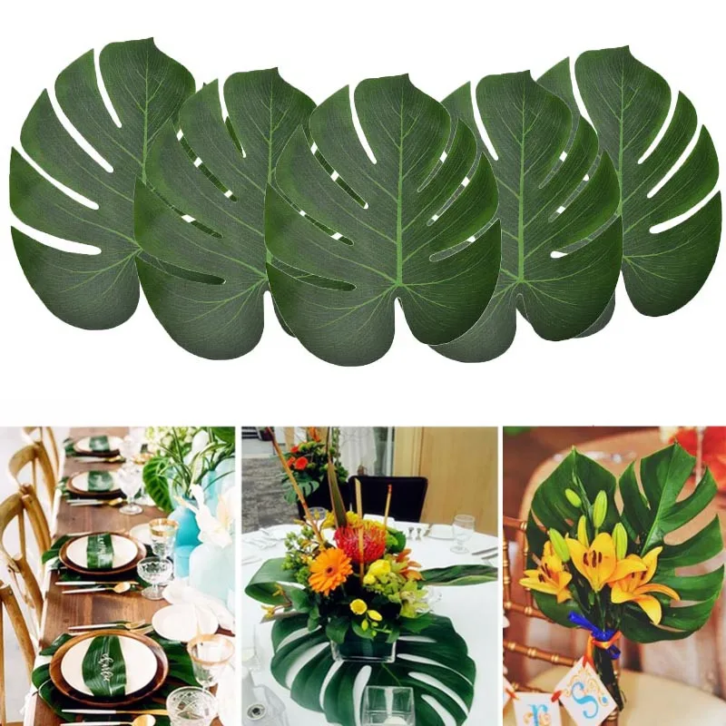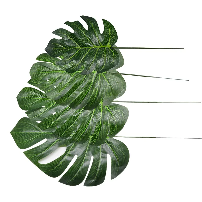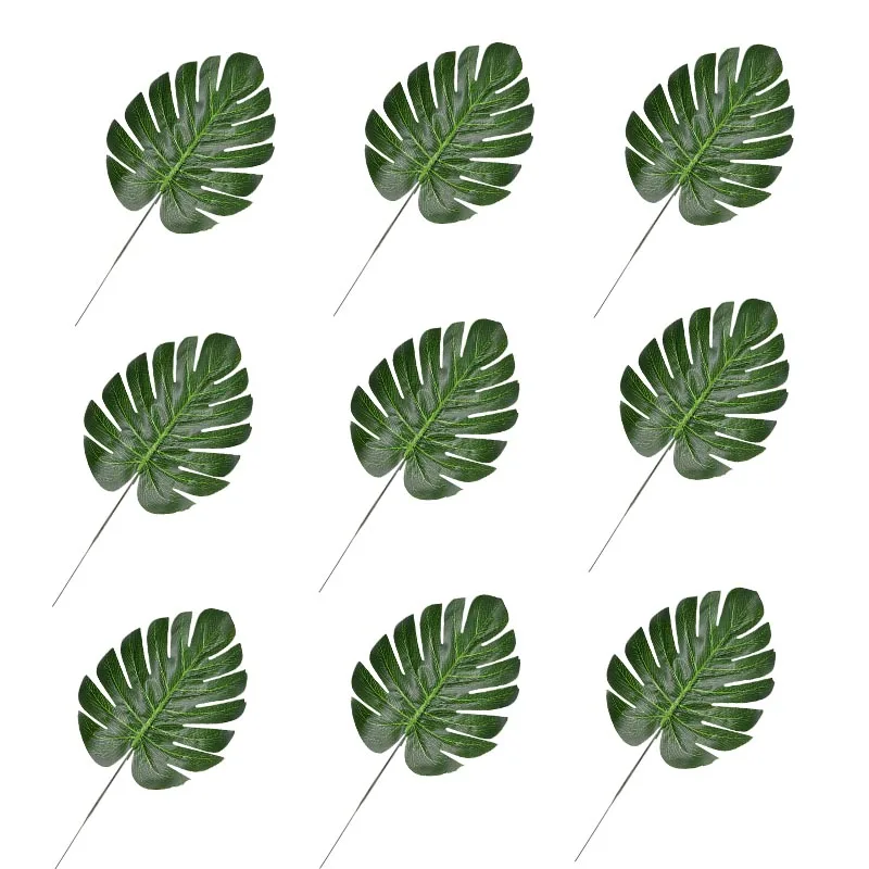 На возраст от 5 до 12 лет, шт. зеленыйЗолотые листья тропической пальмы монстера искусственного шелка листья в форме Панциря Черепахи дома Гавайскую Свадебная вечеринка Декор Поддельные растения