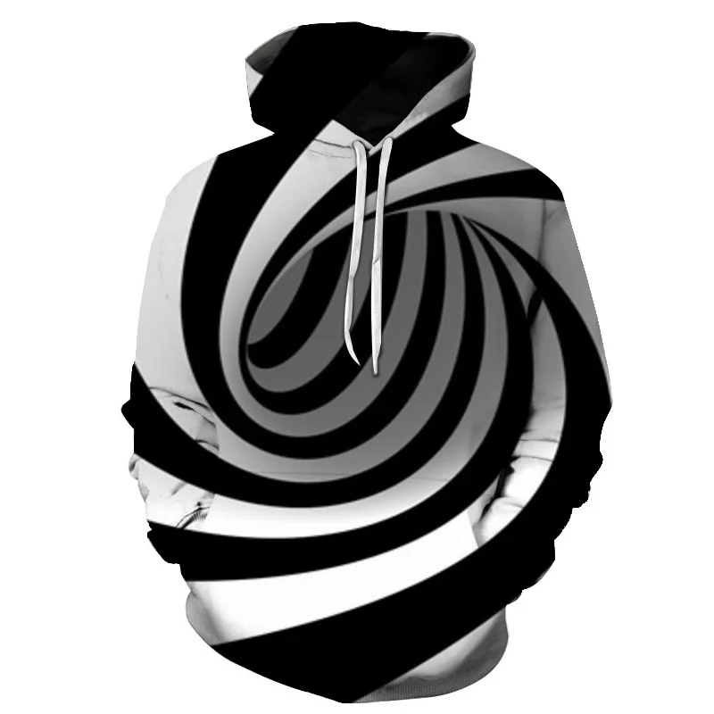 Худи женское, мужское, черно-белое, квадратное, с рисунком головокружения