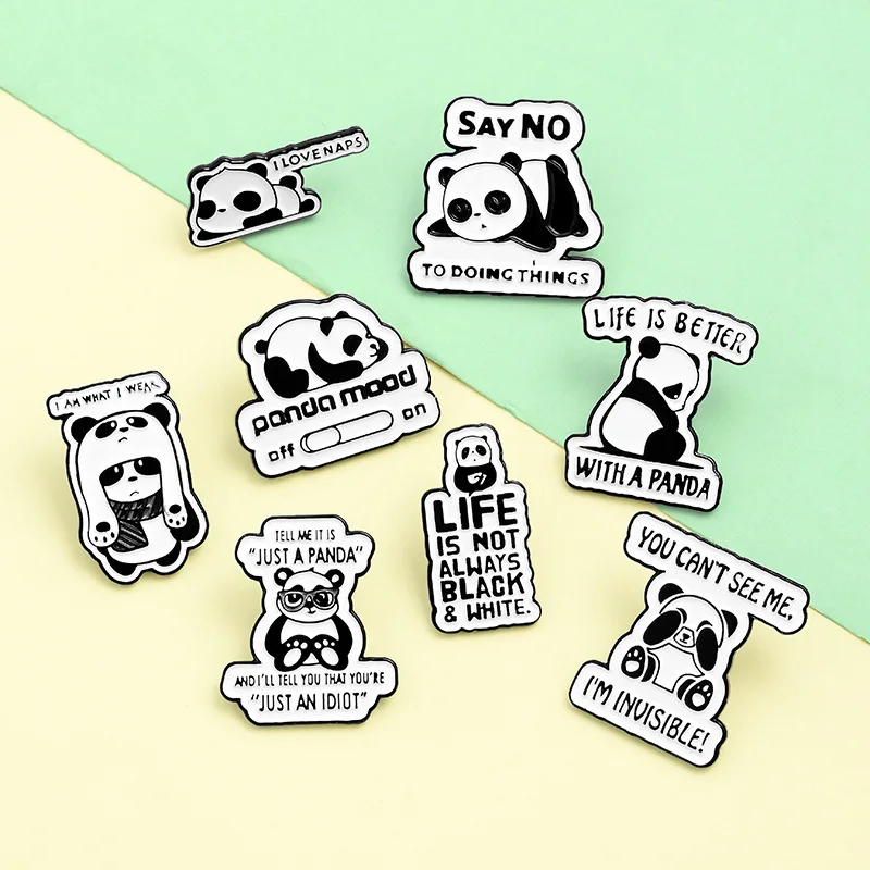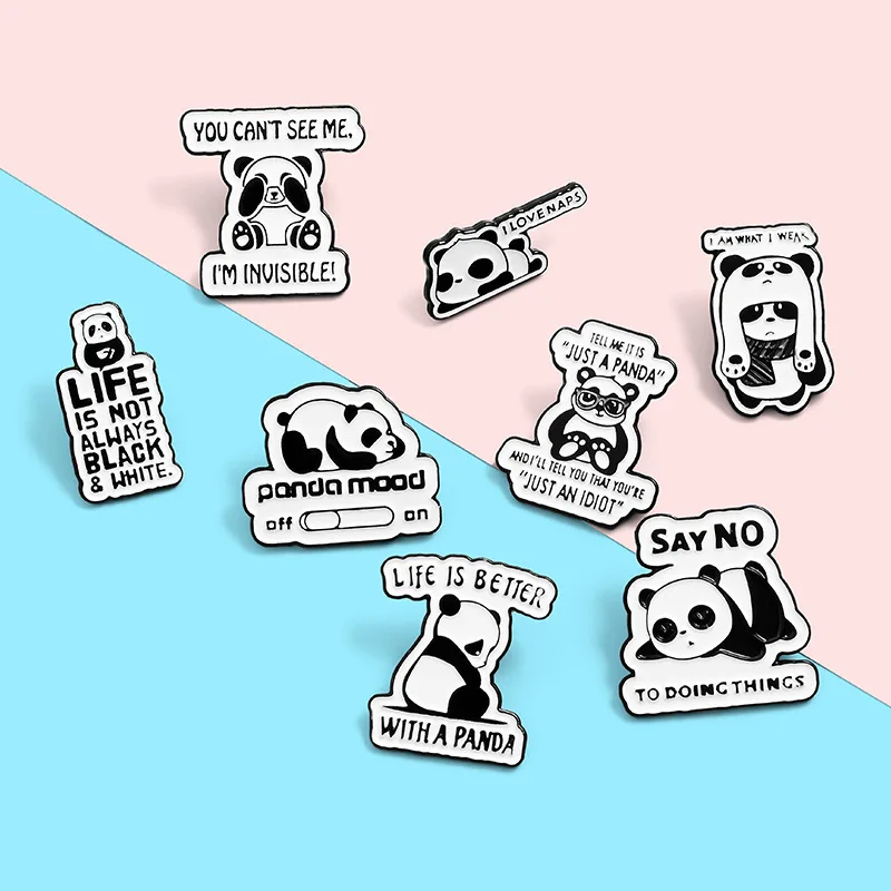 Значки Life Not Always с эмалью в виде черно-белой панды, милые детские значки, крутые значки для женской одежды