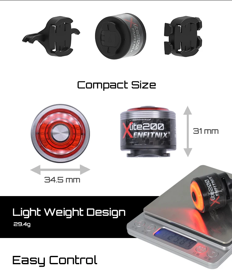 Светодиодный Предупреждение ночсветильник Enfitnix Xlite200, умный задний фонарь, автоматический стоп-сигнал, задний фонарь из углеродного волокна, легкий, Ультраяркий