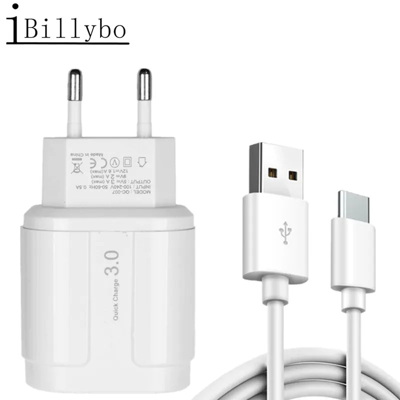 Кабель USB C, зарядное устройство для быстрой зарядки QC 3,0, европ...