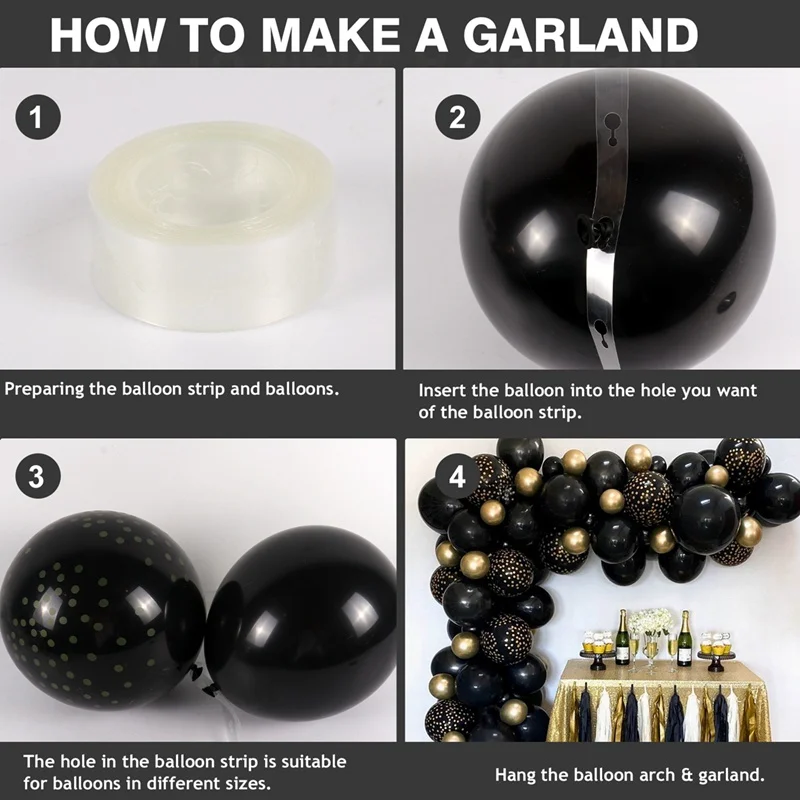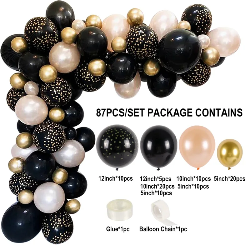 Черные воздушные шары, гирлянда, зернистость, хром, золото, латекс,...
