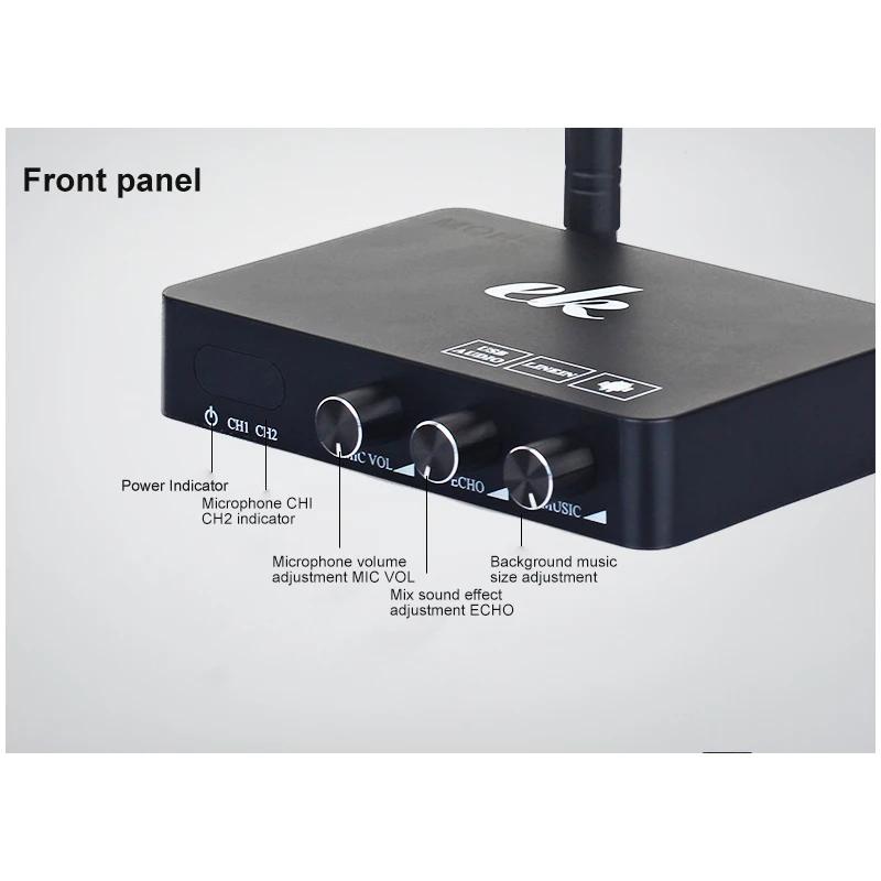 Используя современные Высокотехнологичные технологии, совершенно новый и оригинальный дизайн, со смарт-терминалами (такие как смартфоны, IPAD, smart TV и смарт-приставки), вы можете немедленно испытать удовольствие от KTV, которое не может быть достигнуто с традиционным оборудованием, таким как в хорошем состоянии., Вы можете записывать и делиться своей работой с друзьями из сети в любое время. В этом продукте используются импортные высокоинтегрированные чипы, низкое энергопотребление, высокая чувствительность и сильная защита от помех. Это K-песня для интеллектуальной сети, позволяющая ощутить ощущение звезды.