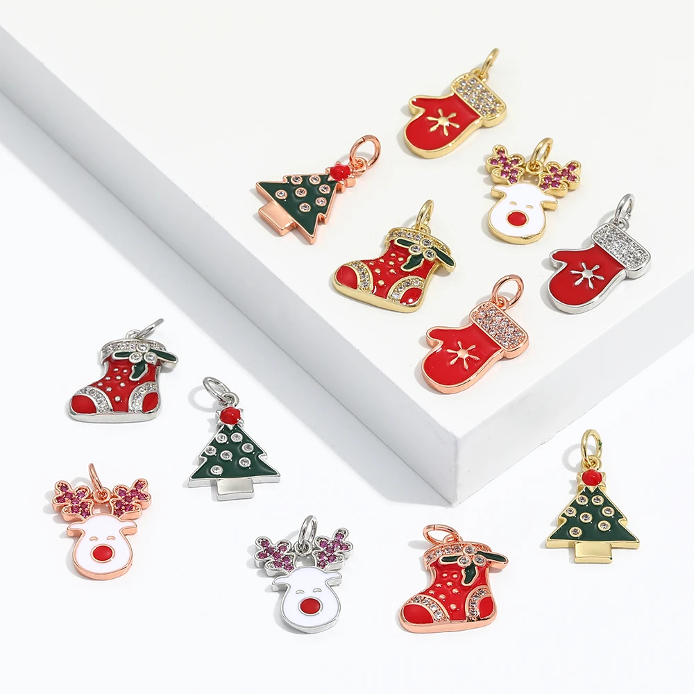 Рождественская елка, чулки, олень, фестиваль, сделай сам, искусственные милые серьги, дизайнерские подвески, изготовление ювелирных изделий, золотой каучук