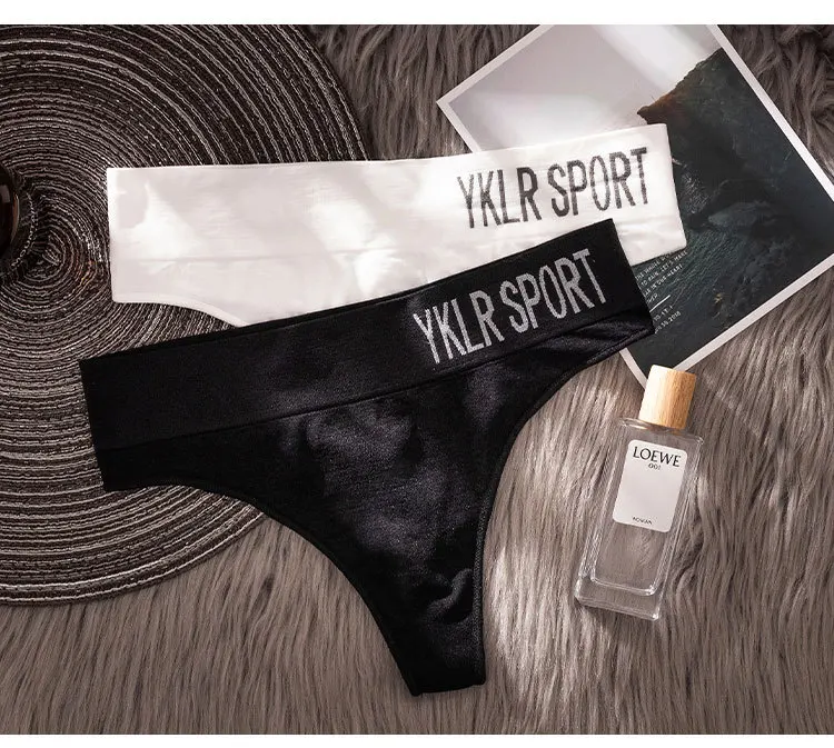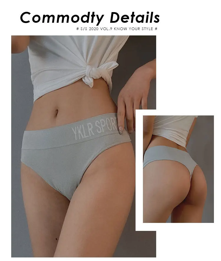 Трусики-танга женские, хлопковые, бесшовные, со средней посадкой, с надписью