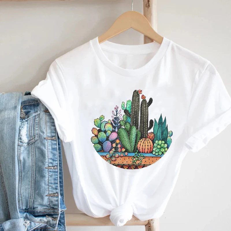 Женская футболка с принтом кактуса, Повседневная футболка в стиле 9...