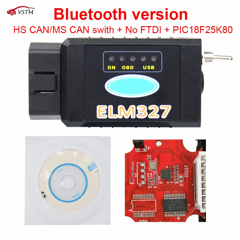 HS MS USB V1.5: ELM327 USB V1.5 Версия с чипом PIC18F25K80, CH340/FT232RL, 2 чип версия может выбрать, и HS-CAN/M-S может переключаться(С CD)