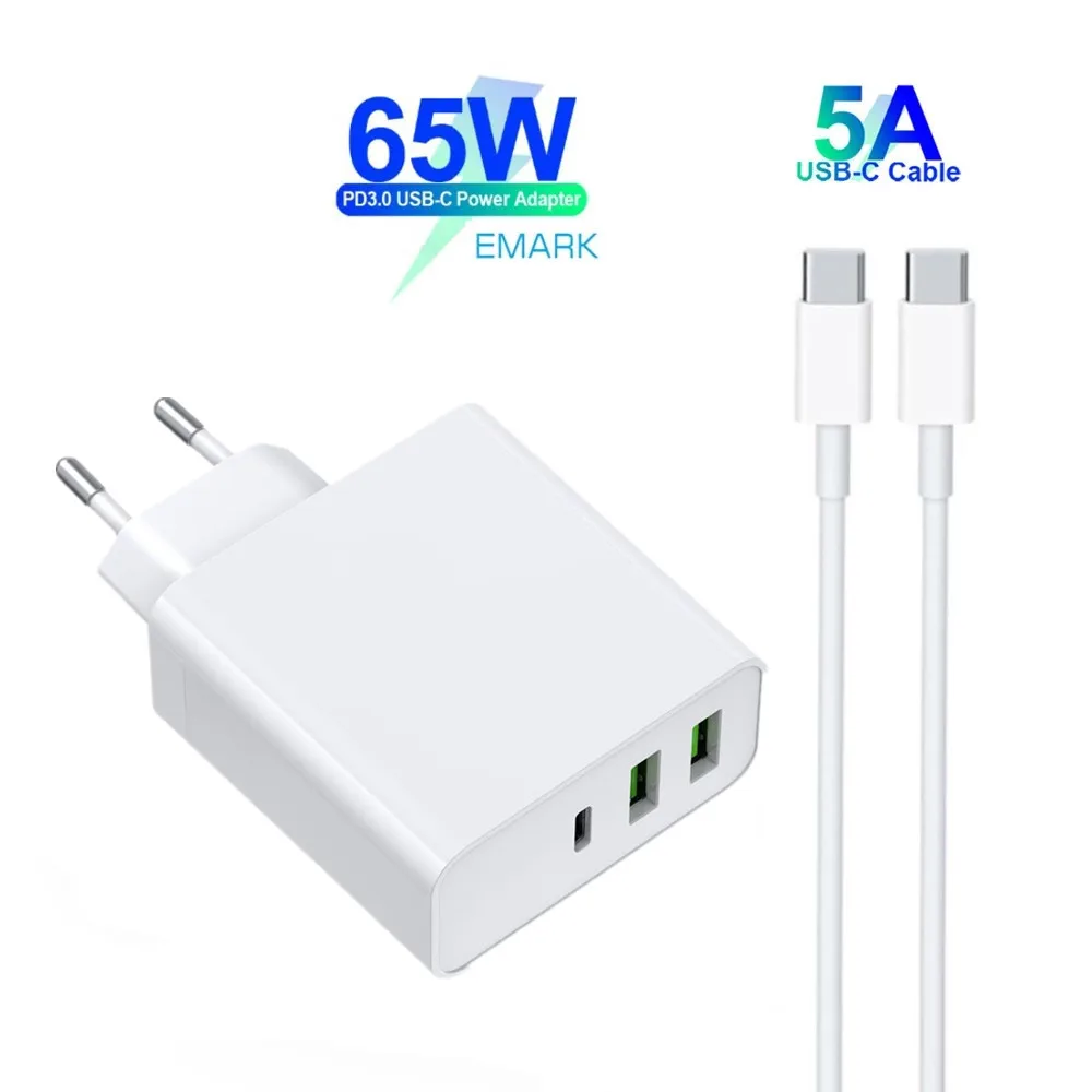 1 порт USB C PD60W QC3.0 зарядное устройство для USB-C ноутбуков MacBook Pro/Air iPad Pro и 2 порта USB A для Samsung iPhone PD3.0 Max 65W