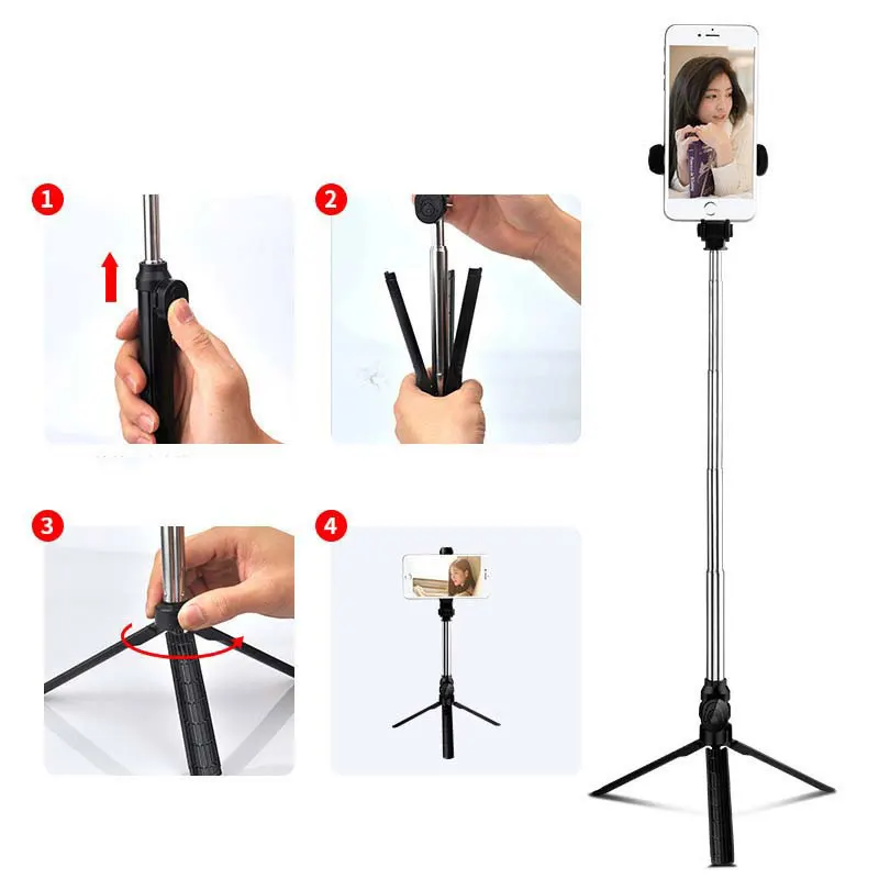 3 в 1 Беспроводная Bluetooth селфи-палка ручной монопод затвор дистанционный складной мини-штатив для IPhone XR 8X7 6s Plus Xiaomi