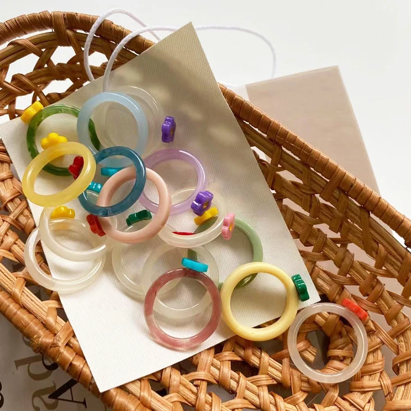 Новинка 2021, милые летние милые корейские прозрачные кольца из смолы с цветами для женщин, для вечевечерние, аксессуары для подарка, Винтажное кольцо на палец