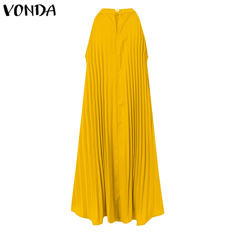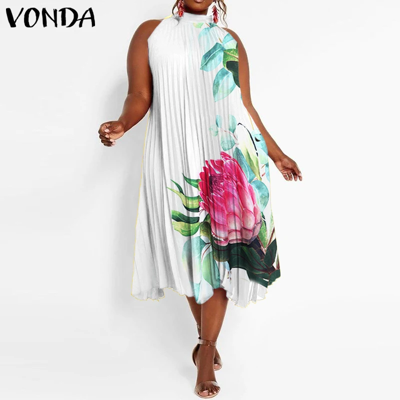 Элегантное Атласное серебристое платье, женские сексуальные вечерние длинные платья без рукавов с воротником-стойкой 2022 VONDA, пляжный сарафан, Повседневное платье