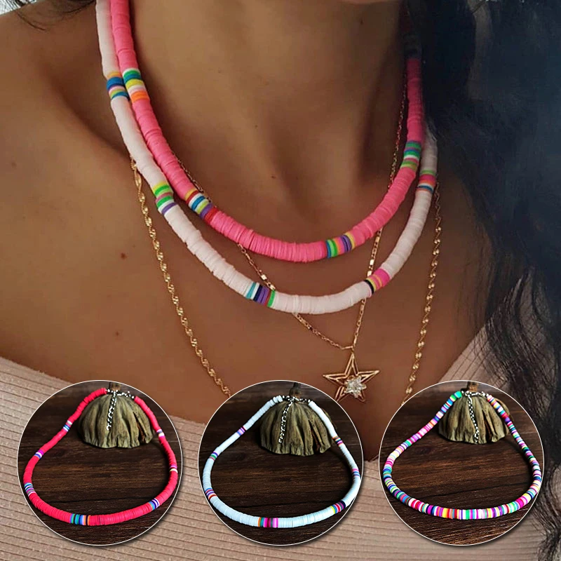 Ожерелье в стиле бохо, разноцветное колье из полимерной глины с бусинами, регулируемое ювелирное изделие для женщин и девочек
