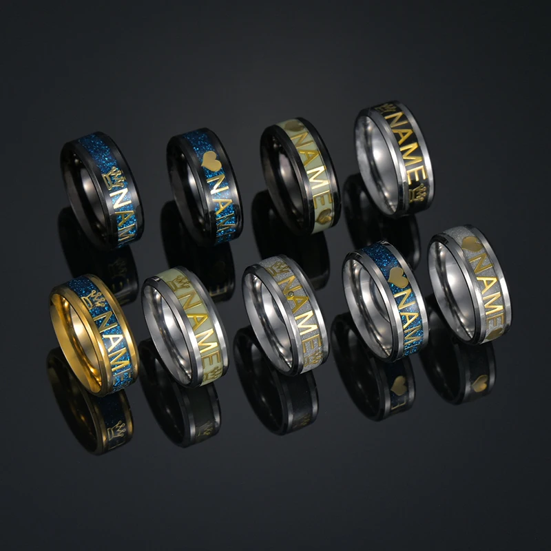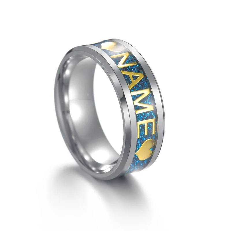 Кольца мужские и женские из нержавеющей стали, из углеродного волокна, с именем на заказ