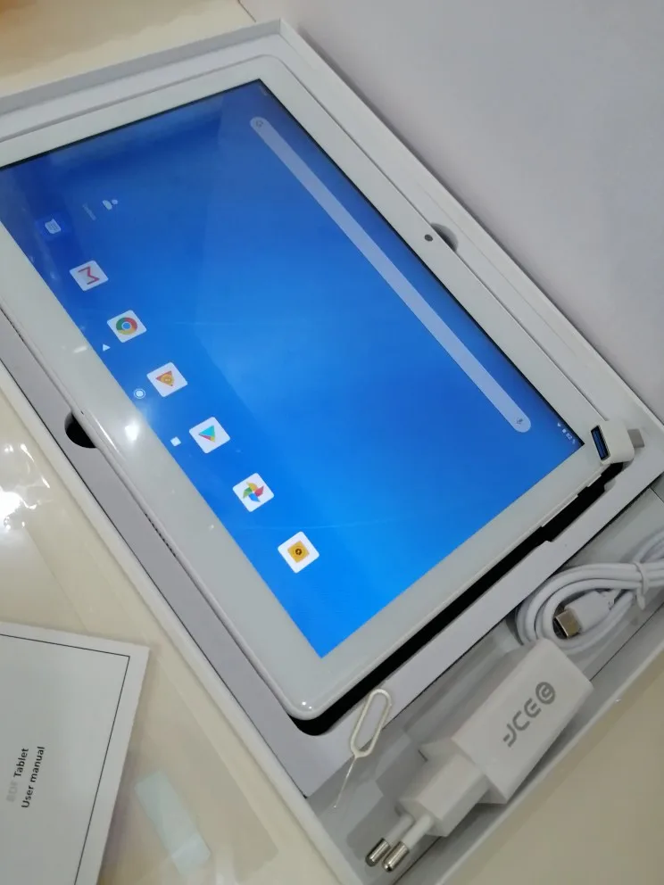 Планшет просто прекрасен,купила полный комплект купила с чехлом и картой памяти и не пожалела!Все преложения от Гугл плей есть.На фото он с ленейкой рядом,но в жизни он выглядит ещё больше.За такую цену это просто находка, несмотря на войну пришел целый,ни царапинки