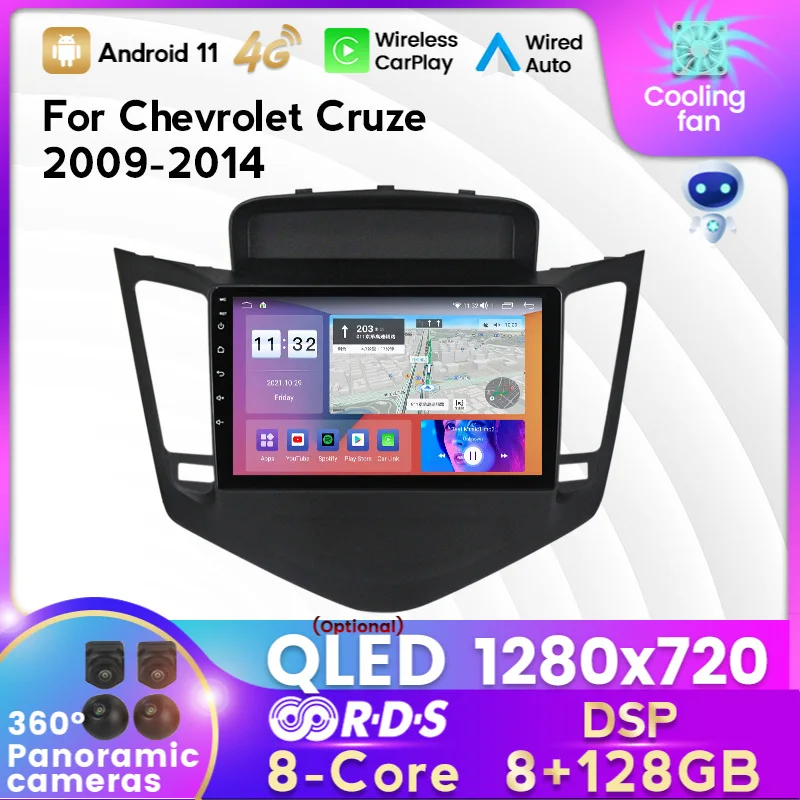 Мультимедийный видеоплеер 2DIN с GPS-навигацией, 4G, LTE, Android 11, Автомагнитола для Chevrolet Cruze 2009-2014 с поддержкой carplay BT