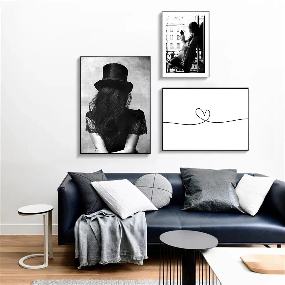 Черно-белый художественный плакат, модная леди, холст, живопись, кл...