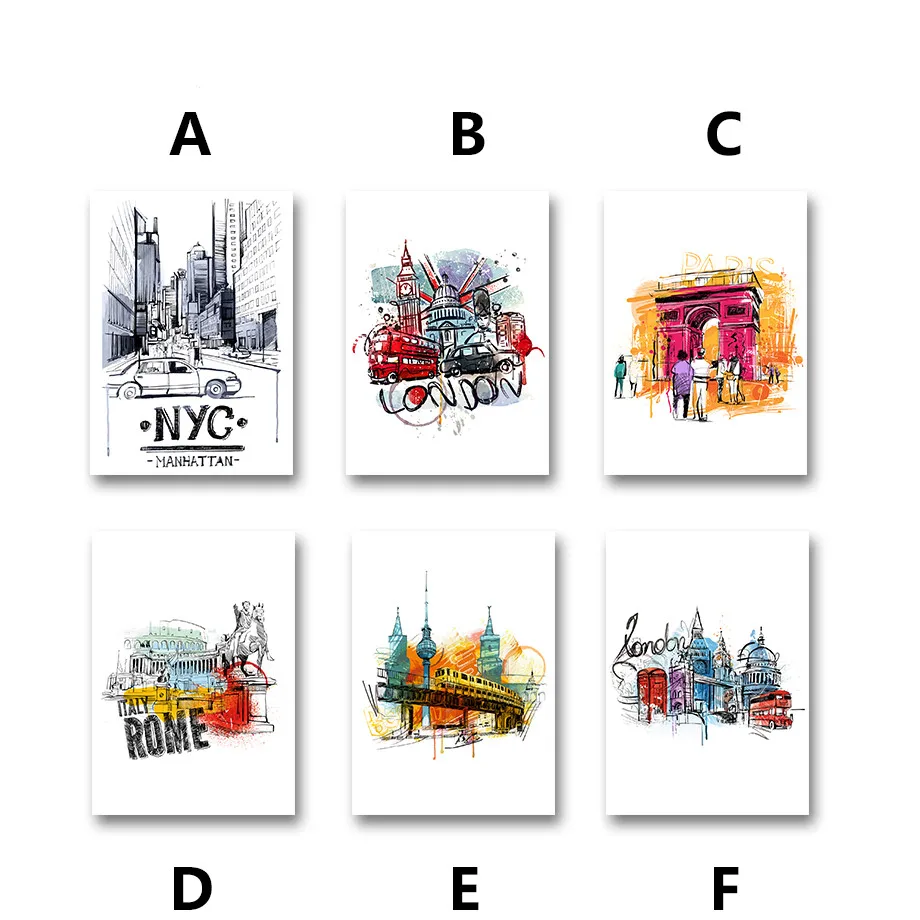 Настенная Картина на холсте в скандинавском стиле, постеры с изображением Лондона, Парижа, римского пейзажа, Нью-Йорка, декор для гостиной и дома