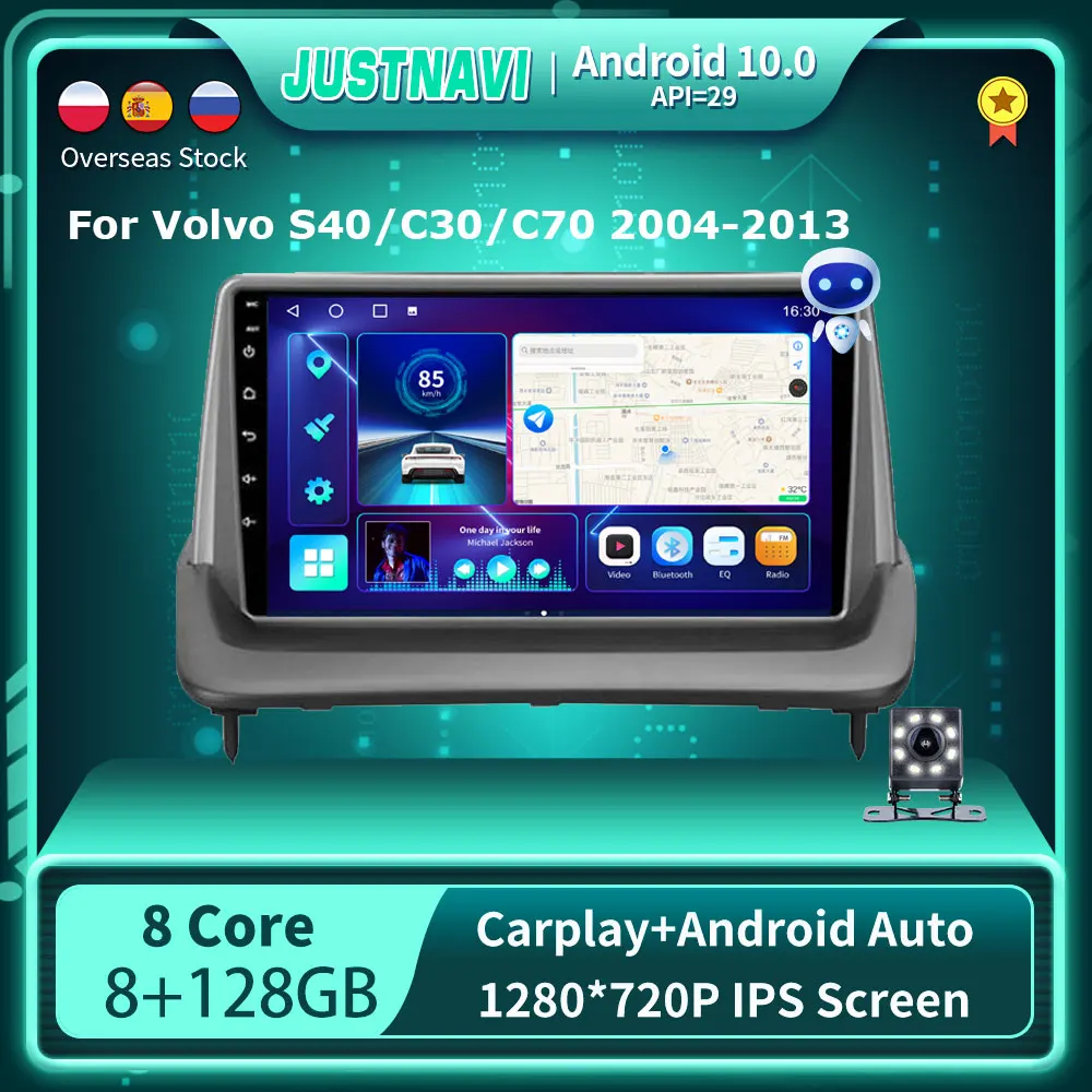 JUSTNAVI 8G 128G автомобильный радиоприемник Android 10,0 мультимедиа для Volvo S40 C30 C70 2004 - 2013 Carplay Авто DSP GPS NAVI 1280*720P 9"