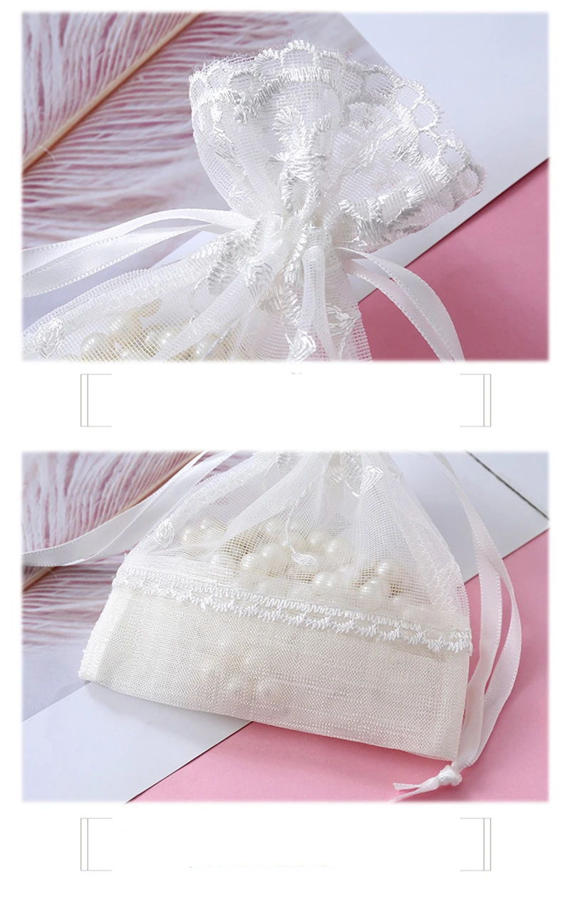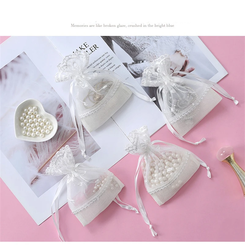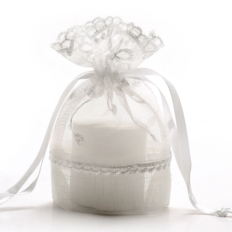 Сумка из белой кружевной пряжи с пятью лепестками, 10x14 см, с сложенным дном, мешочек на шнурке для украшений, креативный подарок, карман на шнурке