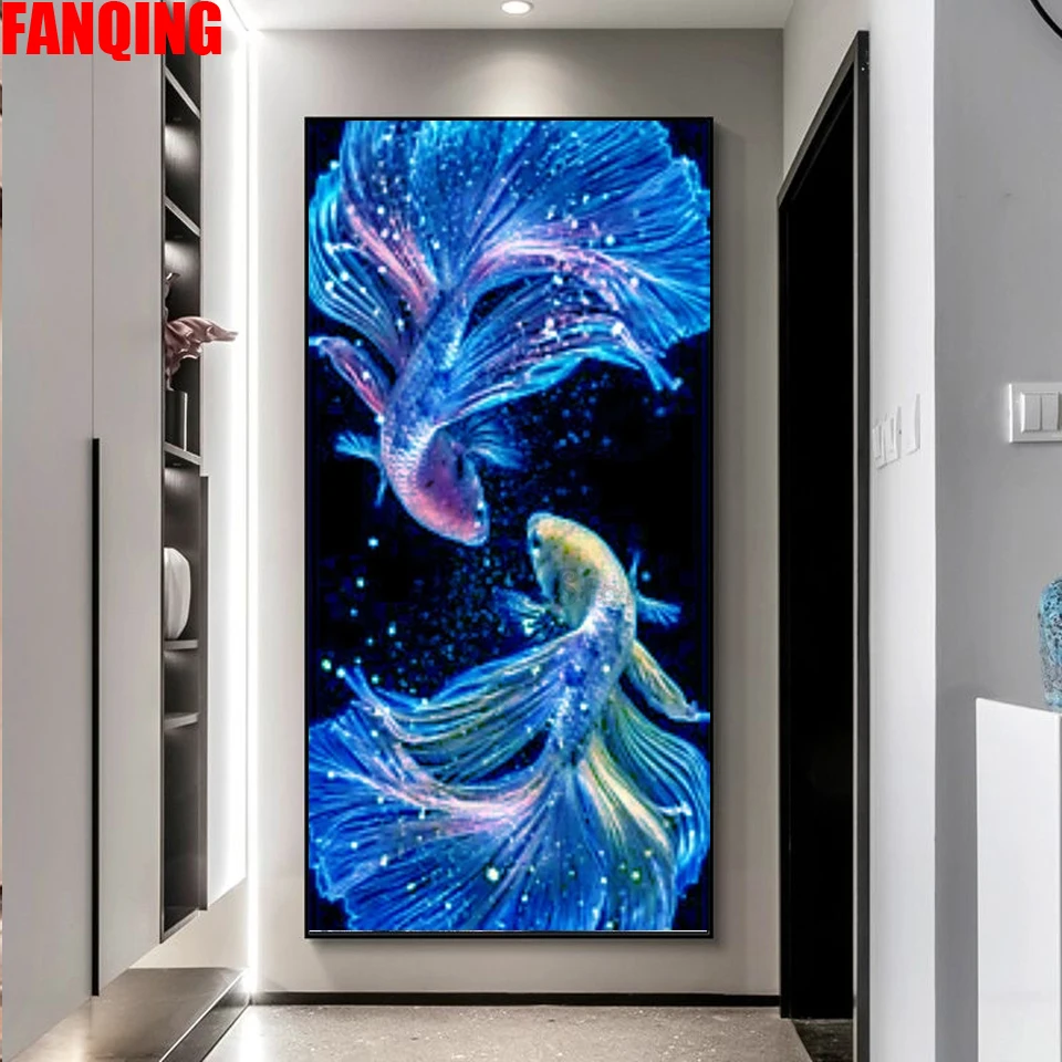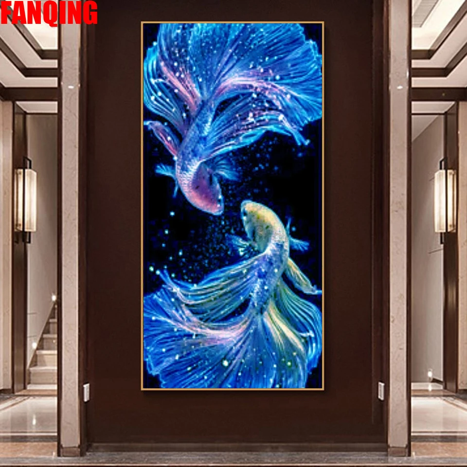 5d алмазная живопись "сделай сам", фэн-шуй в виде рыбы, мозаика на карпа, картина стразы, вышивка крестиком, полностью квадратные круглые алмазные картины, домашний декор