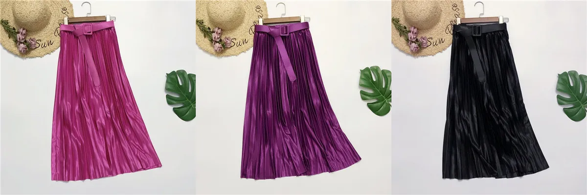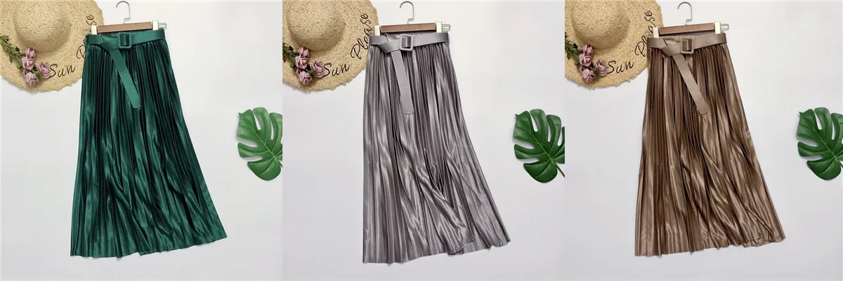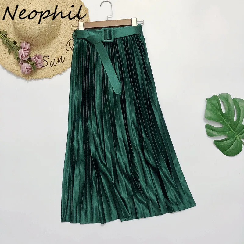 Neophil 2022 роскошная винтажная Женская юбка миди с поясом плиссированная трапециевидная атласная Глянцевая юбка с высокой талией юбка в уличном стиле S21558