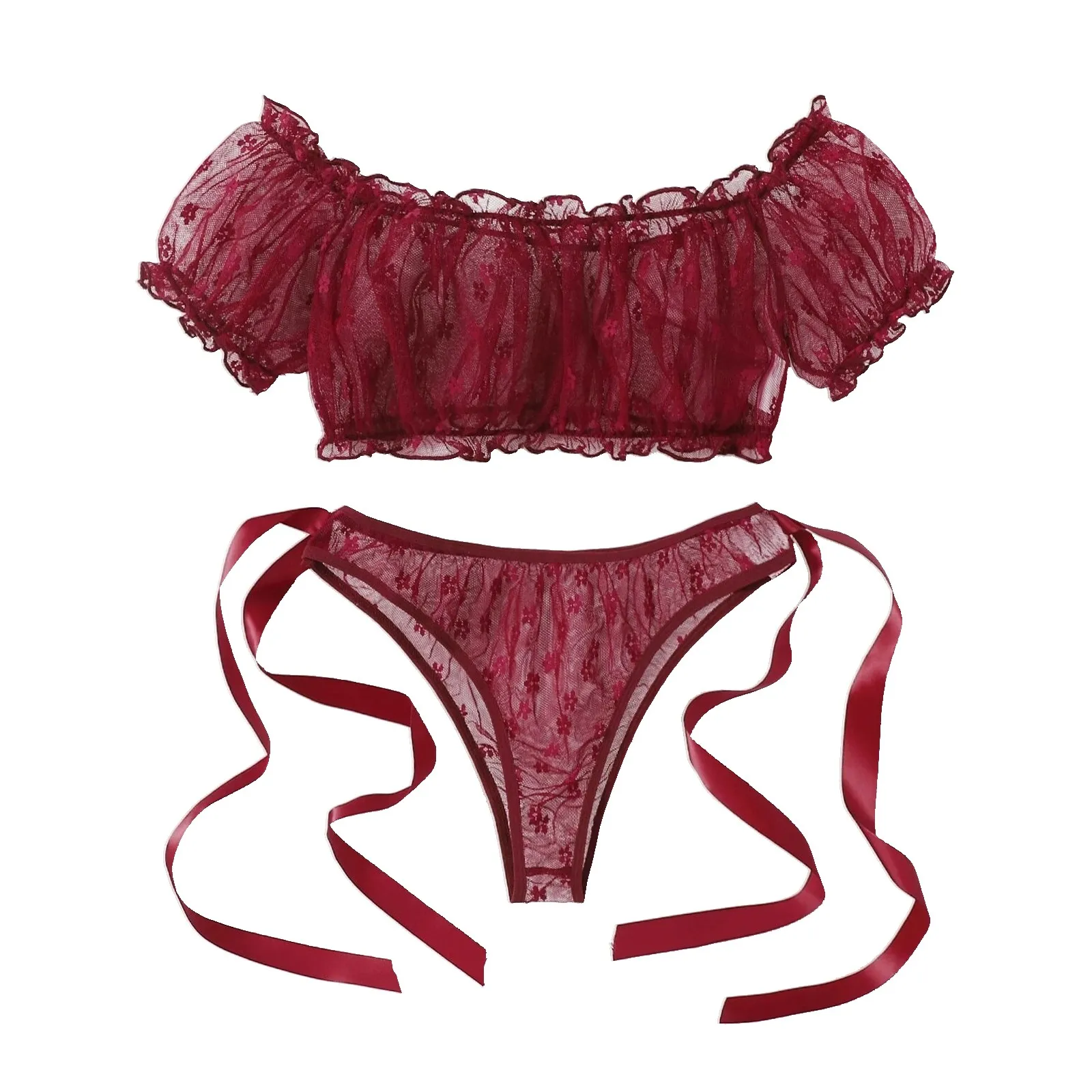 Топ с вышивкой цветов стринги Нижнее Белье для сна женское кружевное белье