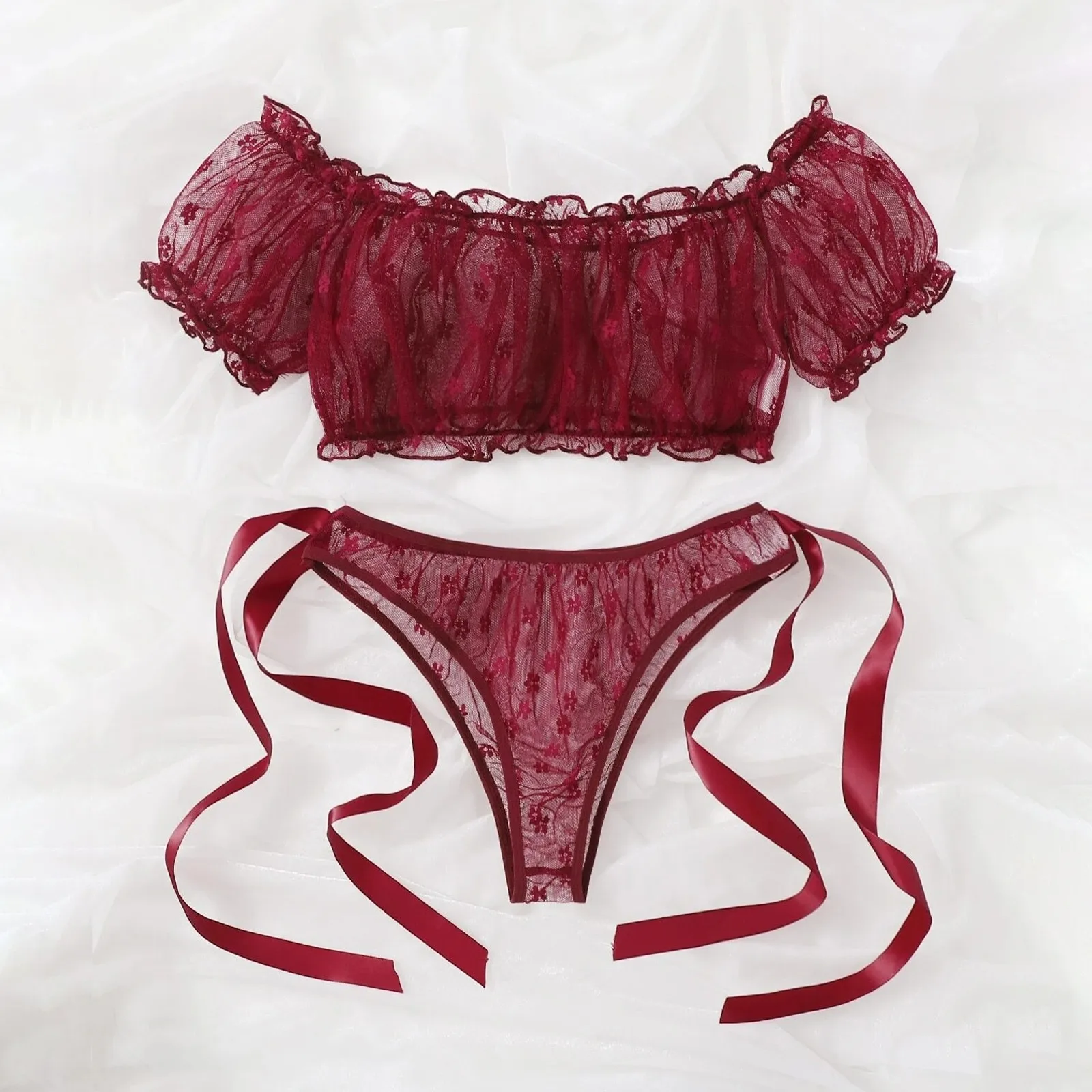 Сетчатое прозрачное сексуальное женское белье, комплект нижнего белья с цветочной вышивкой, женское чувственное нижнее белье, горячий Эротический бюстгальтер с бантом, Короткие комплекты