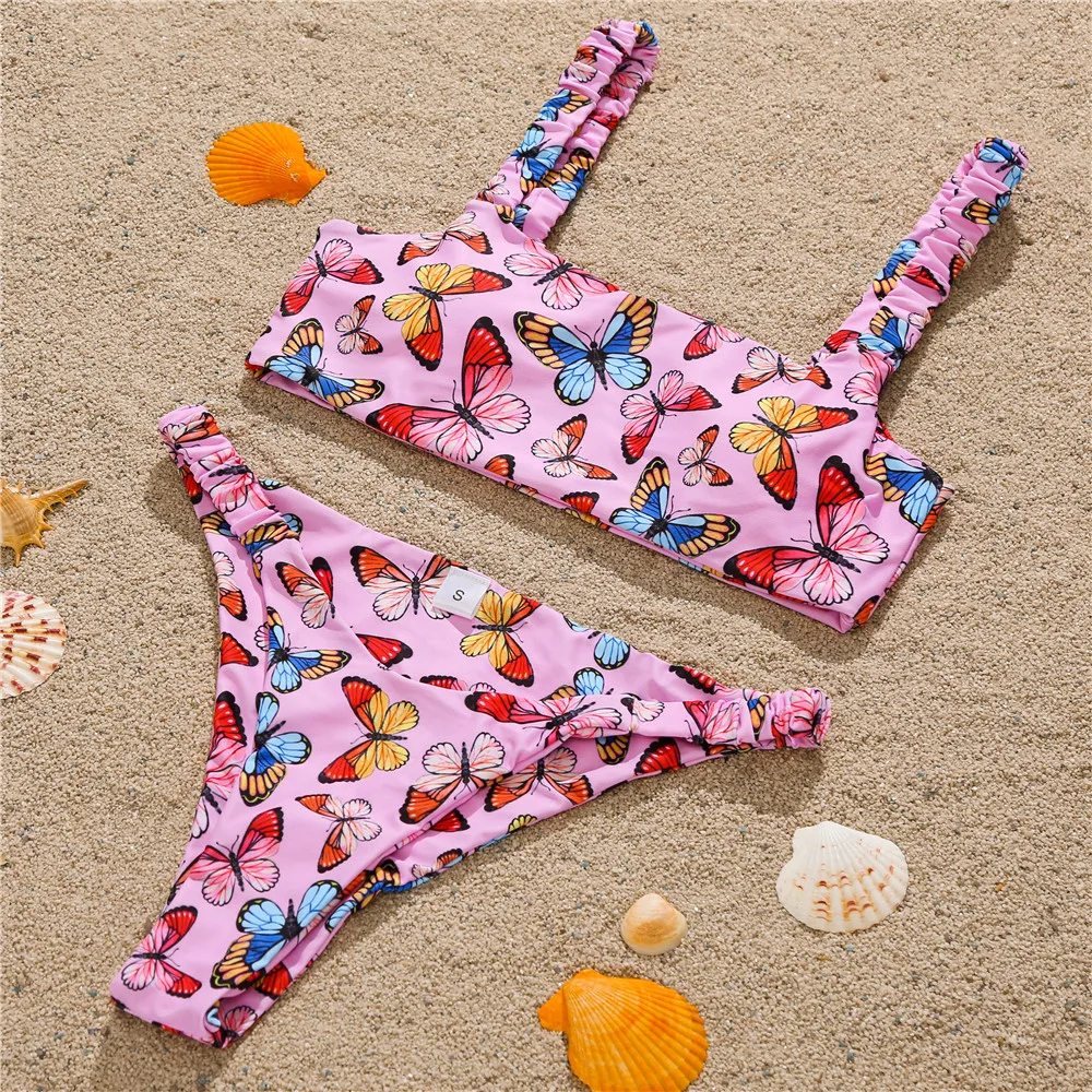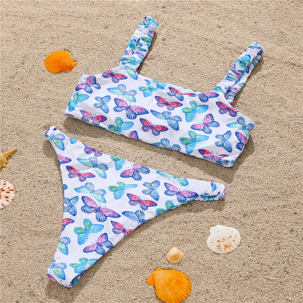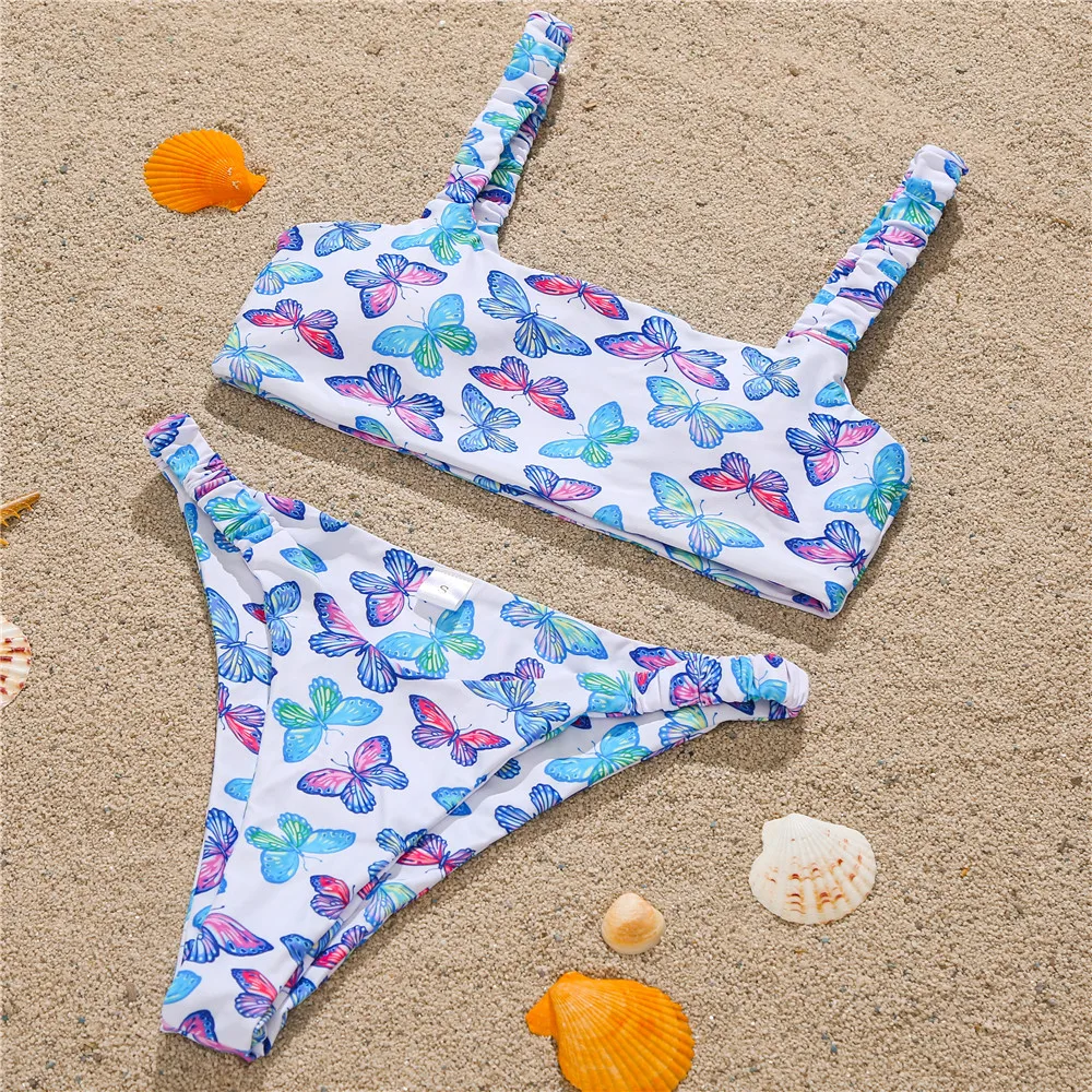 Новые Сексуальные бикини с принтом бабочек, высокая эластичность, пляжная одежда, купальник из двух частей, женские стринги-бандо