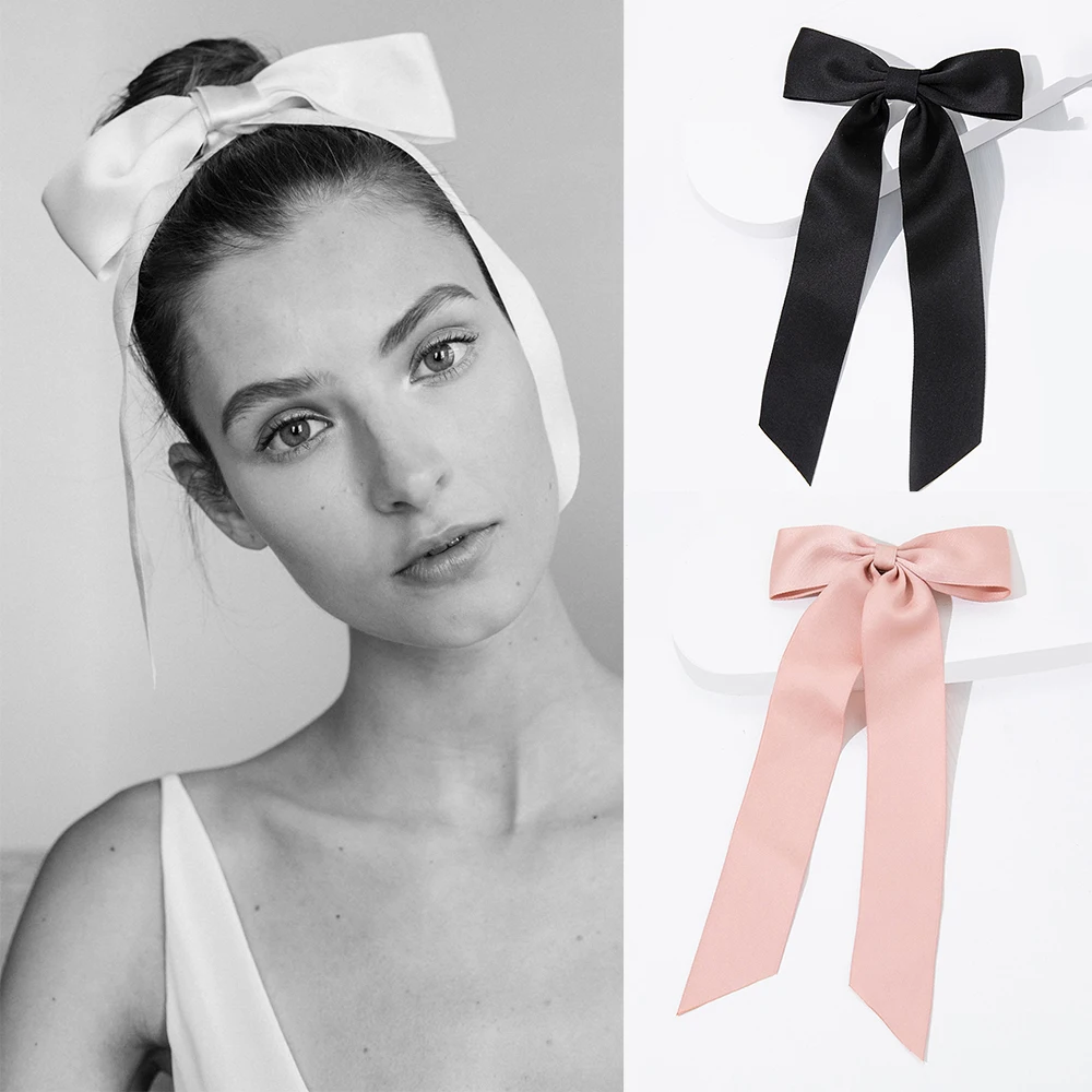 Однотонные заколки для волос с большим бантом для девочек, популярные заколки для волос для женщин, милые двухслойные длинные ленточные заколки для волос, аксессуары для волос
